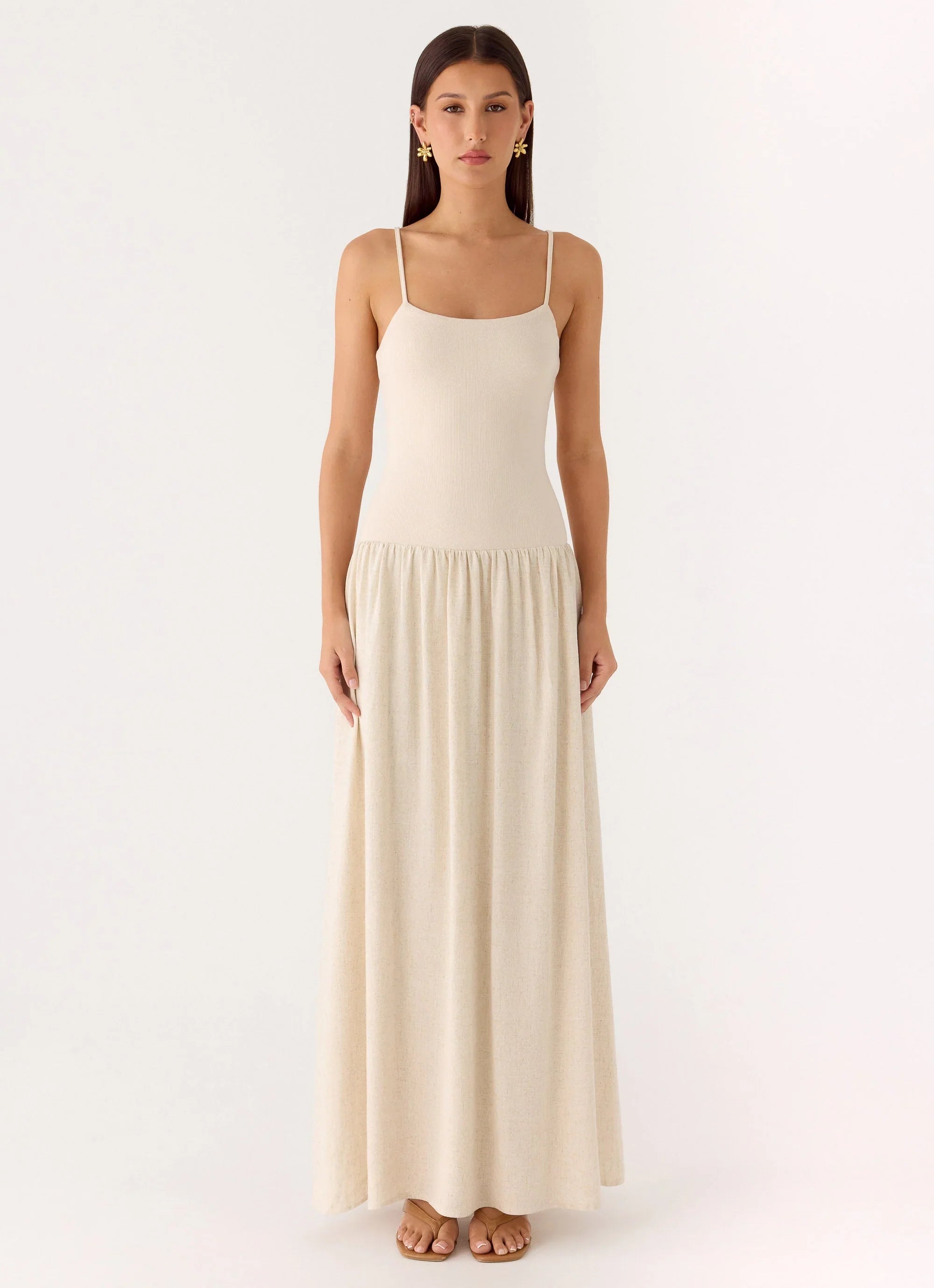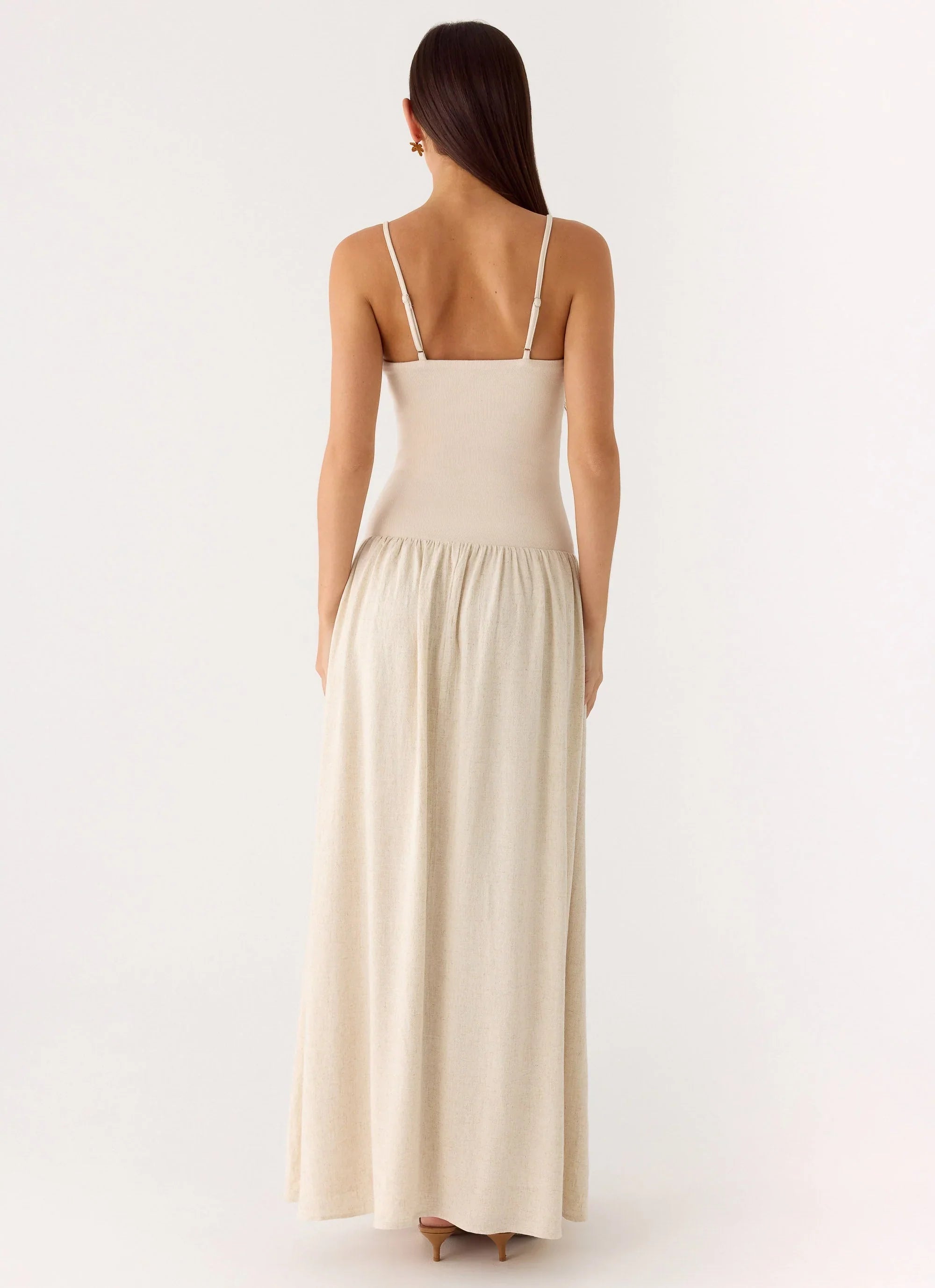 The Ali Linen Maxi Dress is your go-to for breezy summer days and sunset strolls. With a scoop neckline, adjustable straps, and a flowy maxi silhouette, this dress is crafted for effortless elegance from beach to bar. The ribbed jersey bodice and linen-blend skirt create a flattering, comfortable fit.