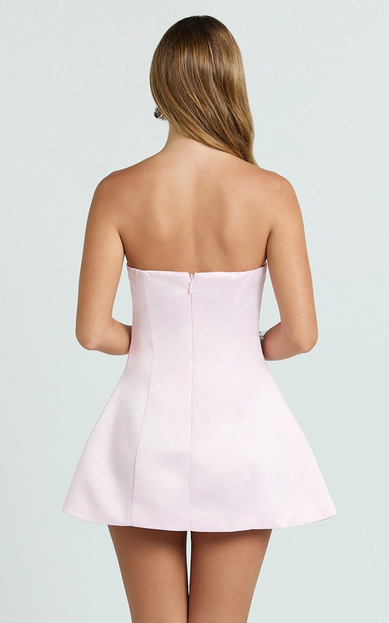 The Alina Mini Dress turns pink into a full-on moment, flirty, sparkly, and made for the dance floor. Think nightlife-ready energy with a twirl factor that flatters and a hold-you-in fit that keeps you comfy from first toast to last dance. The clean lines and statement diamanté bow bring main-character vibes with every move. Style it with platform heels and oversized sunglasses for a glam edge, or lean into disco energy with a glossy clutch and a slick bun. Keep it cute with ballet flats for a daytime switch-up, then layer on delicate pendant necklaces after dark. Style with a clutch and sheer layer to dial up the romance - this A-line mini keeps it sleek, leg-lengthening, and spotlight-ready.