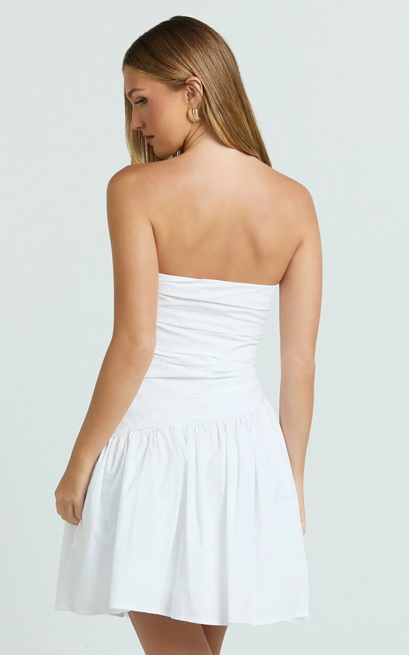 The Almera Mini Dress in White features a ruched, curve-hugging silhouette that flatters from every angle, while the clean strapless neckline keeps it sleek for any occasion, from cocktail hour to the dance floor. Wear romantic, radiant makeup and a pendant necklace for that soft-meets-sculpted vibe. This fresh white moment levels up your dress edit for hens, birthdays, or a night out. Style it with a tailored blazer to keep things polished, or switch into sneakers for an effortlessly cool contrast. White always wins, just add confidence and go.