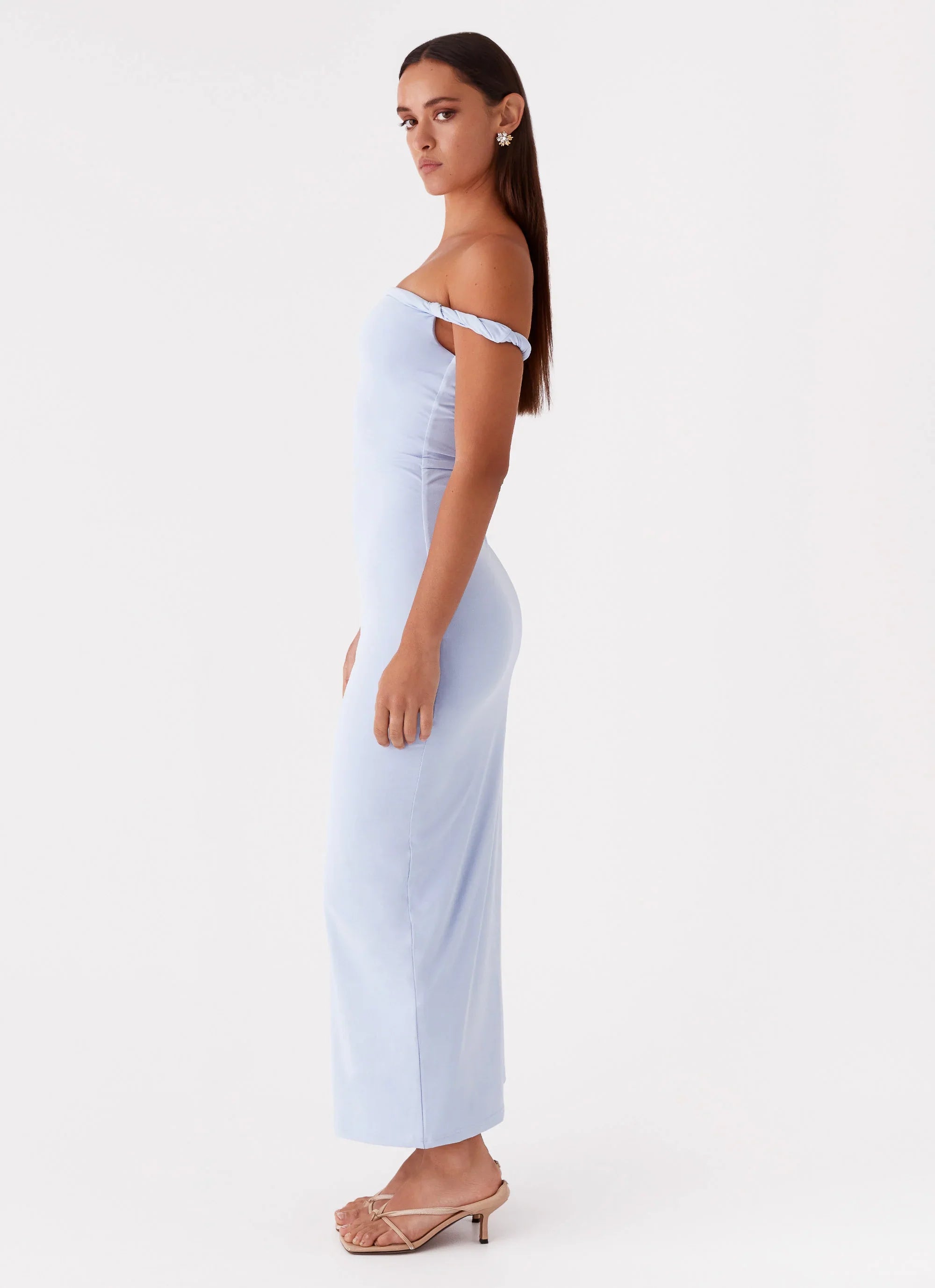 Introducing the Arabella Twist Shoulder Maxi Dress, where elegance meets modern sophistication. Featuring an off-the-shoulder neckline, twist detail straps, and stretch fabric, it's designed to enhance your silhouette with effortless charm and timeless style.