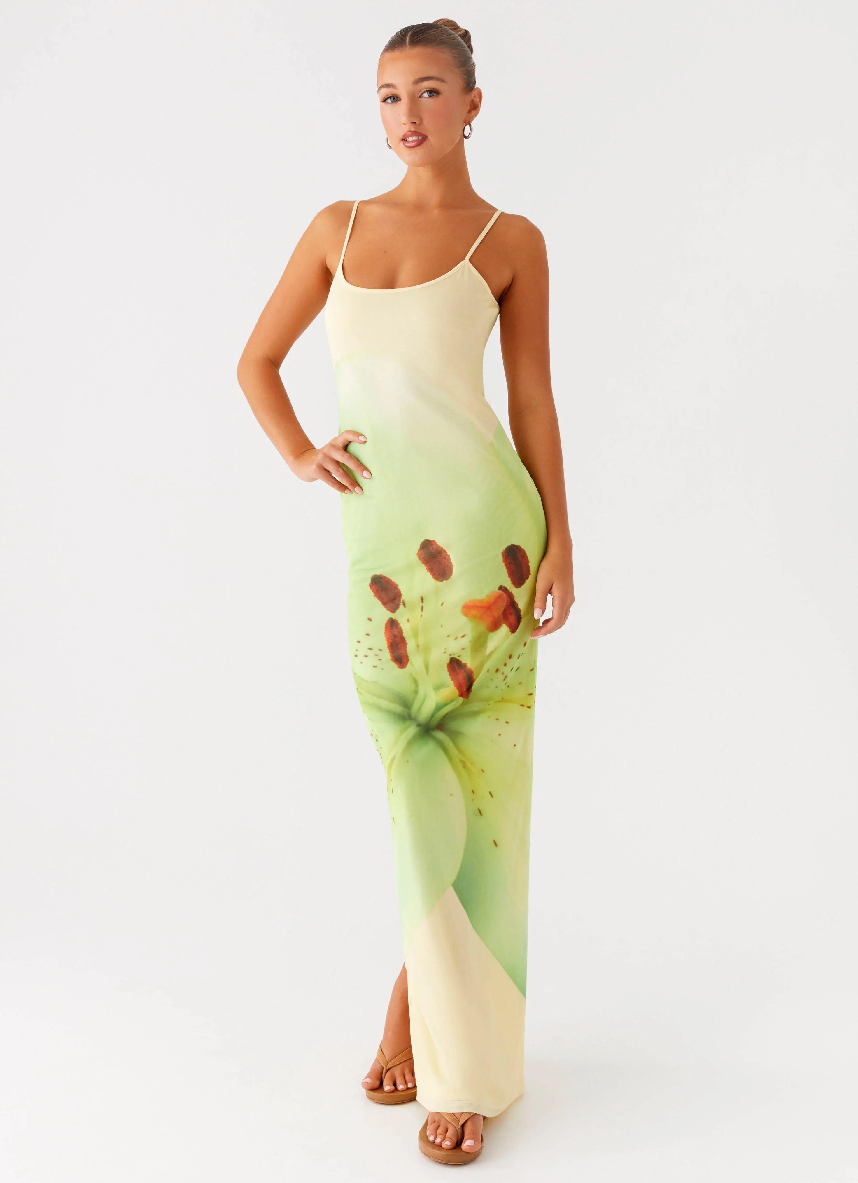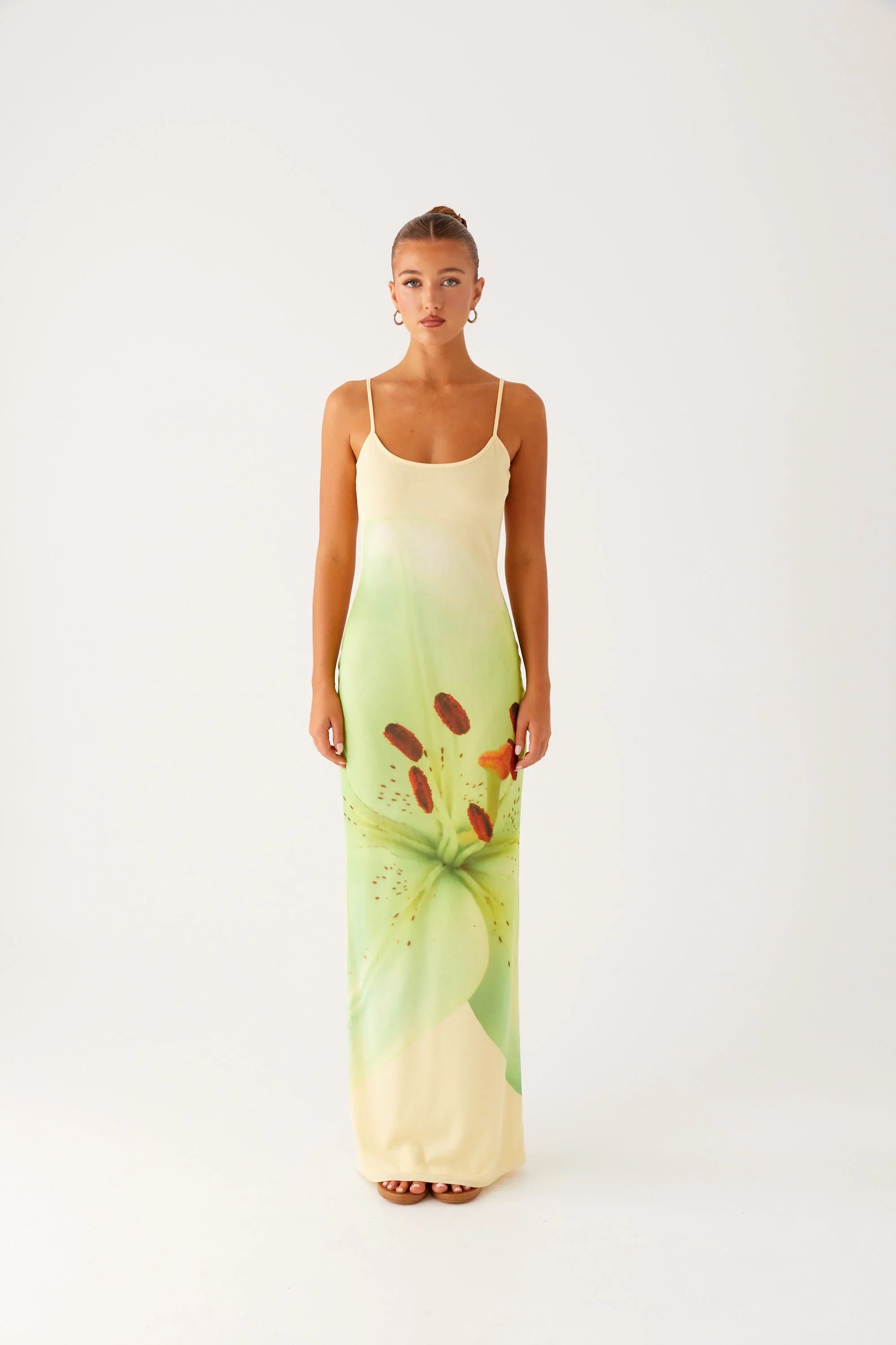 The Bad News Mesh Maxi Dress captivates with its delicate thin adjustable straps and a flattering rounded neckline. Draped in an eye-catching floral print, this dress blends effortless elegance with a touch of boldness. Perfect for those nights when you want to make a statement from dusk till dawn.