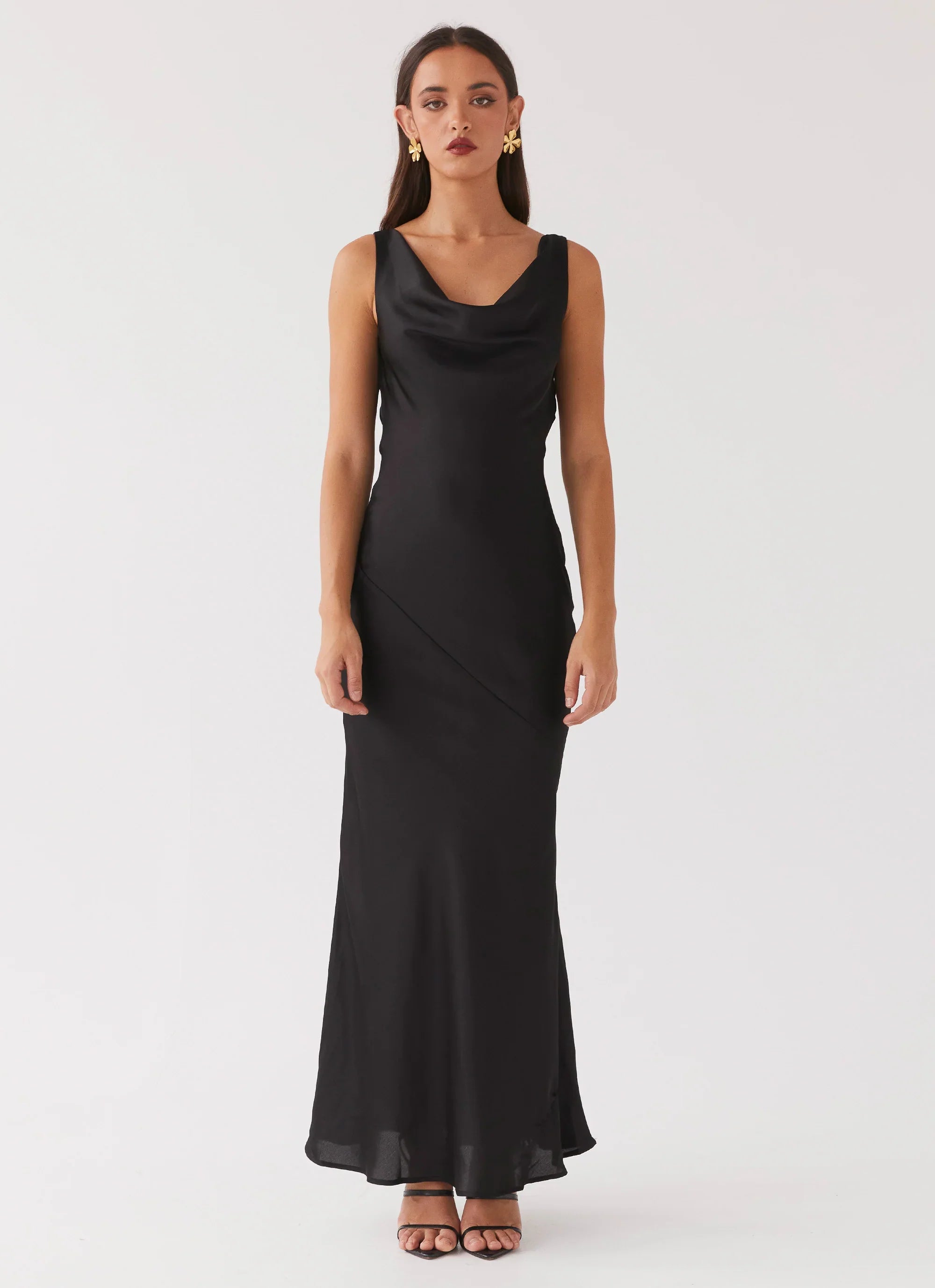 Elevate your elegance with the Be Mine Satin Maxi Dress. Its lightweight, draping silhouette and glamorous cowl neckline make it a timeless choice for your next event