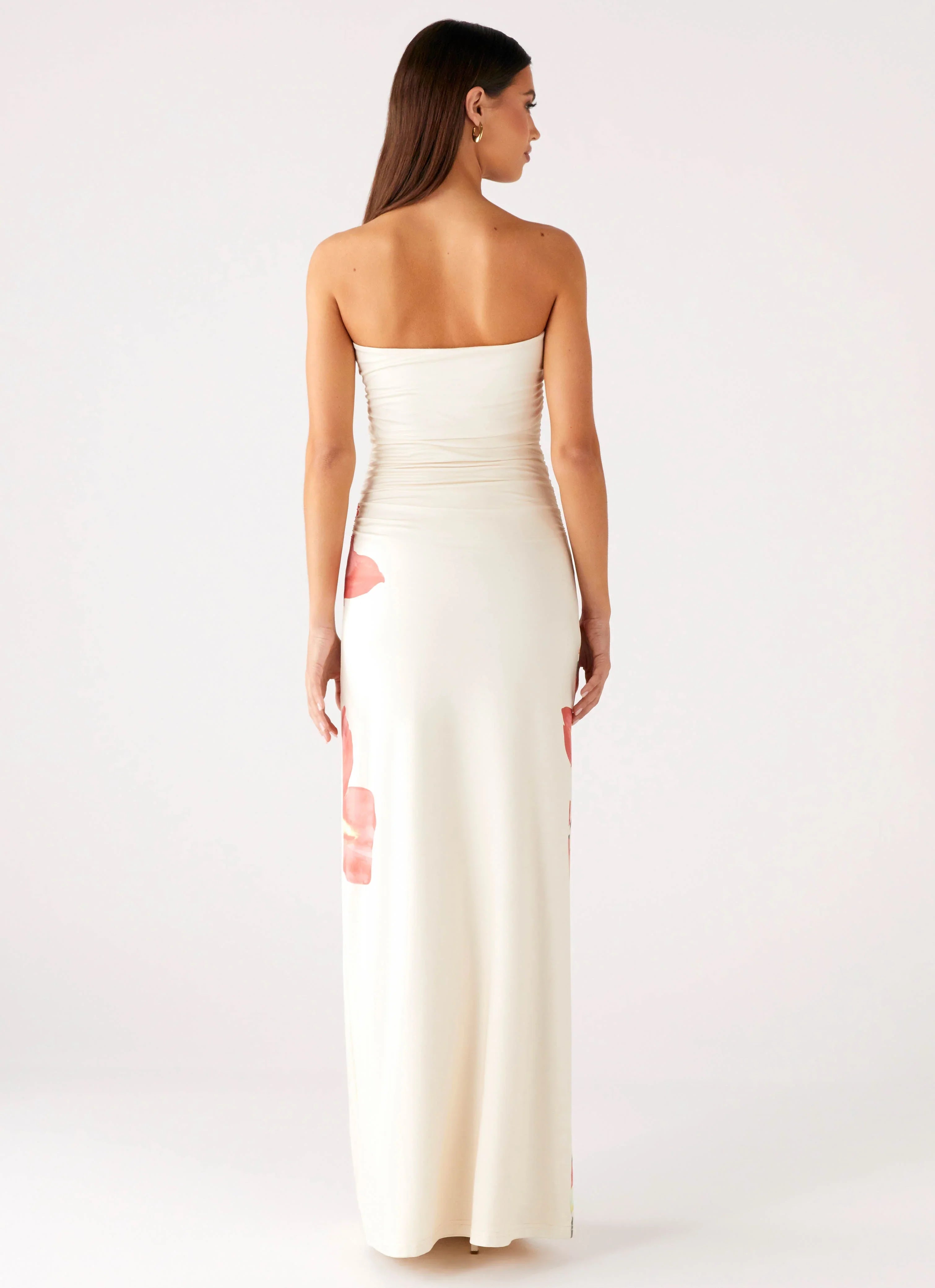The Bellanca Strapless Maxi Dress is made for endless nights and glowing city lights. Featuring a strapless neckline with silicone taping for a secure fit, this maxi-length dress hugs the body with ruched sides and stretch jersey fabric. Fully lined and crafted in an exclusive print, it’s designed to move with you from sunset to sundown.