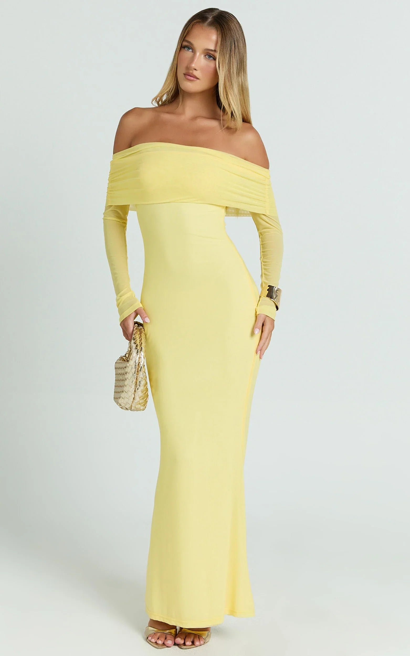 The Bethanie Maxi Dress in Lemon is sunshine spun into fabric - that off-the-shoulder neckline gives you instant glam, and the mesh drapes over your curves in a way that feels both flirty and elegant. It’s perfect for garden soirées, sunset parties, or any moment where you want to command attention without trying too hard. Style it with gold strappy heels, layered delicate chains, and a linen clutch for a polished summer look, or throw on metallic sandals and a bold lip when you’re ready to sparkle under the night lights. Wear lemon like you own every room.