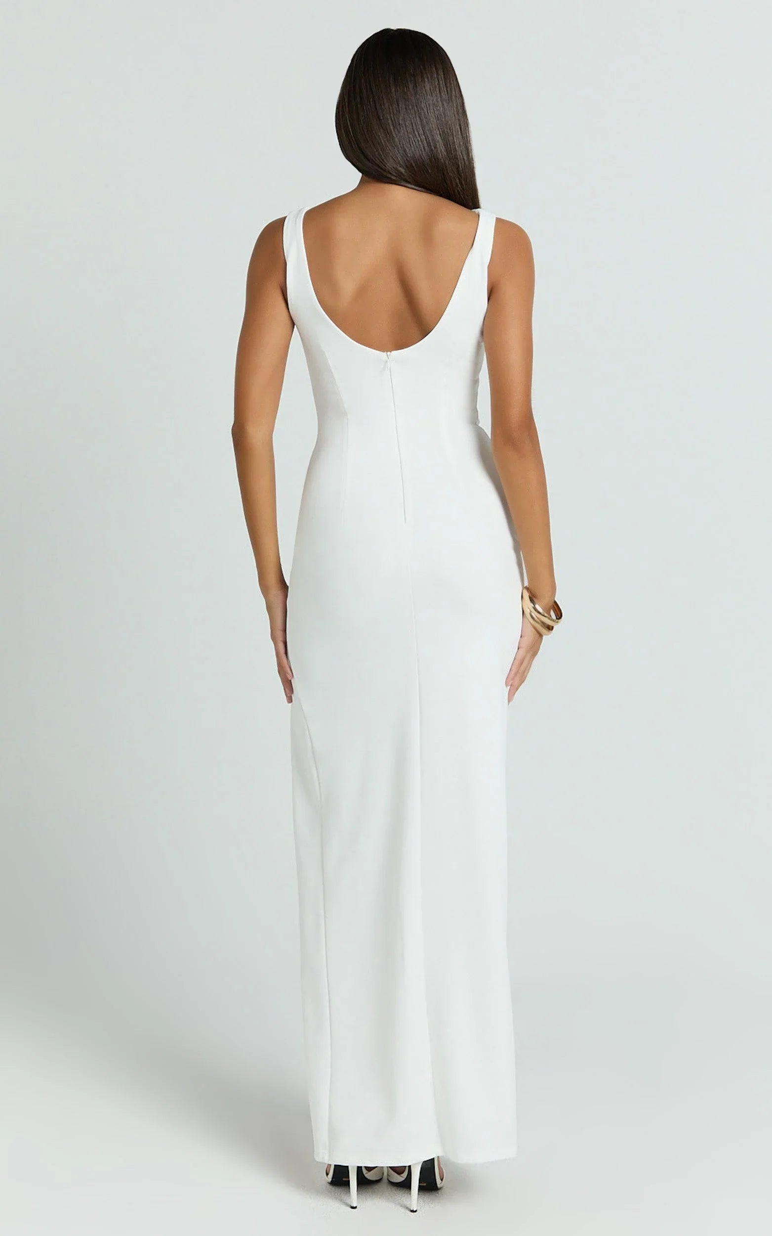 Blake keeps the focus clean and Monochrome, serving sculpted lines that photograph beautifully from every angle. Slip into strappy heels and a micro clutch to keep the vibe refined, then add delicate hoops for a subtle glow. The Blake Maxi Dress - Boat Neck Bow Bodycon Dress In White is your go-to for major moments, simple, striking, unforgettable.