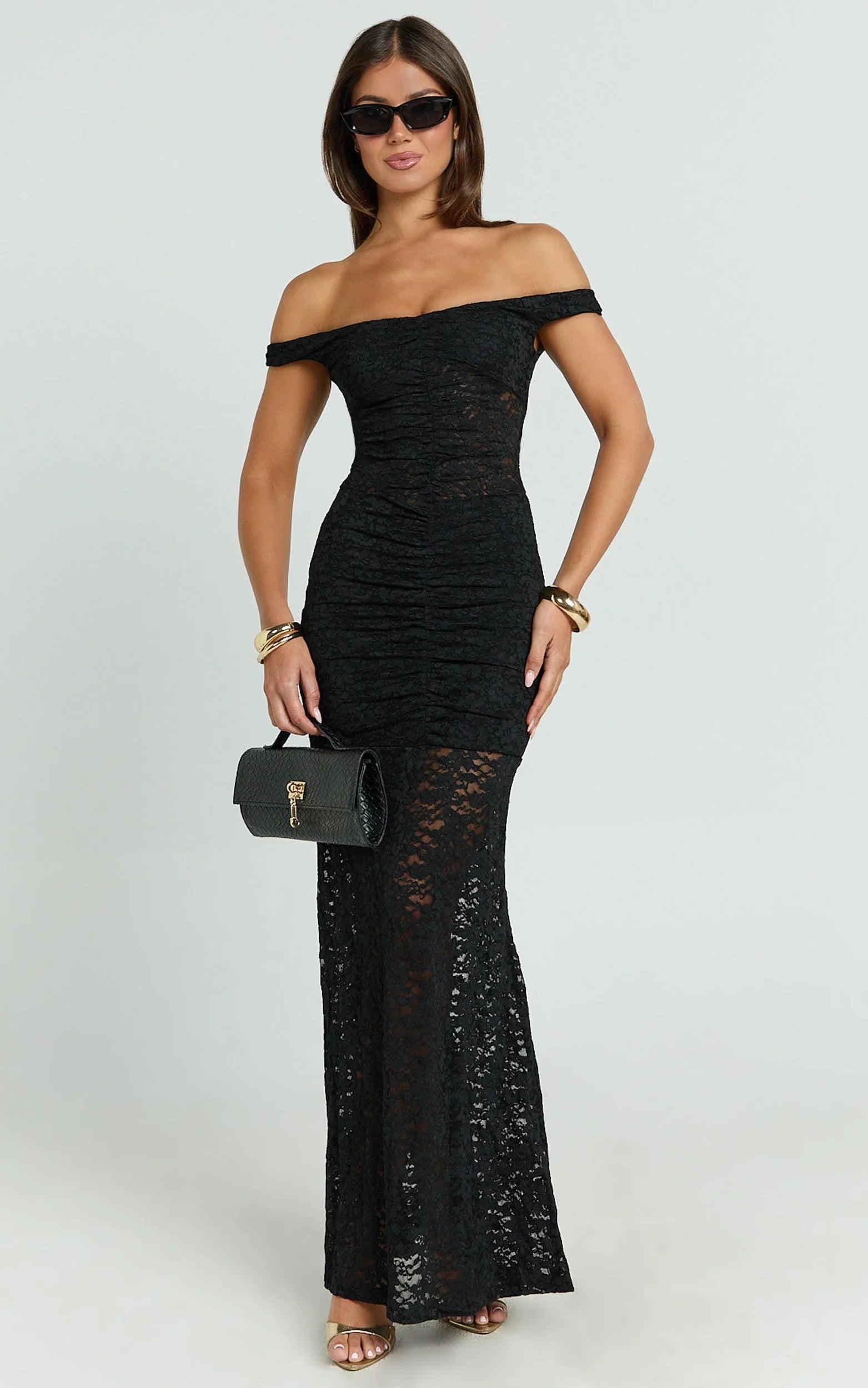 The Brenda Maxi Dress - Lace Scoop Neck Keyhole Bodycon Dress In Black pairs effortlessly with minimalist heels and a slim clutch to let the lace detail shine. Add delicate hoops and a sleek pony for an elongating finish, or throw on a trench for an elevated night-out layer. Consider it your fail-safe, feel-hot maxi that photographs like a dream and fits every RSVP.