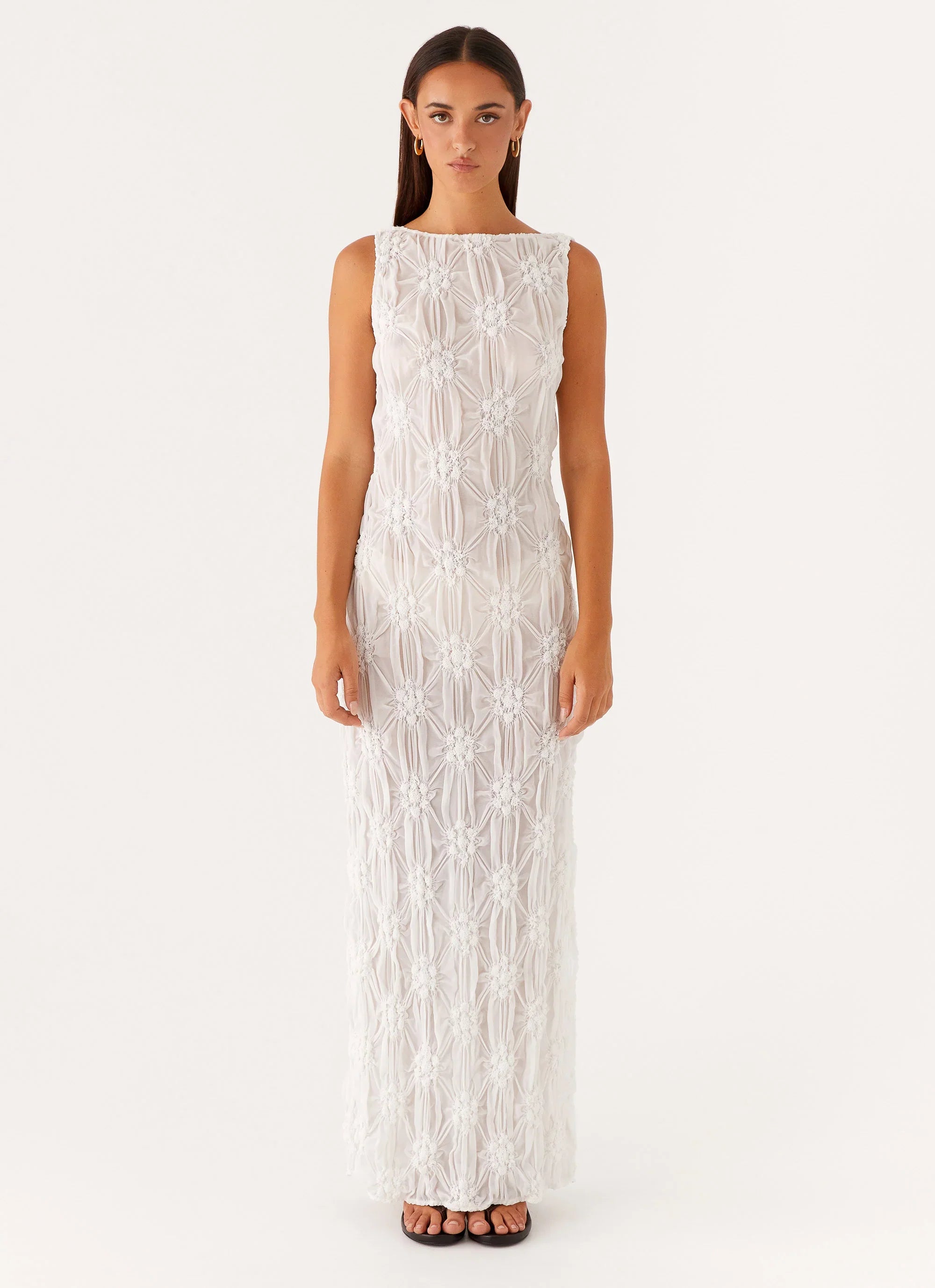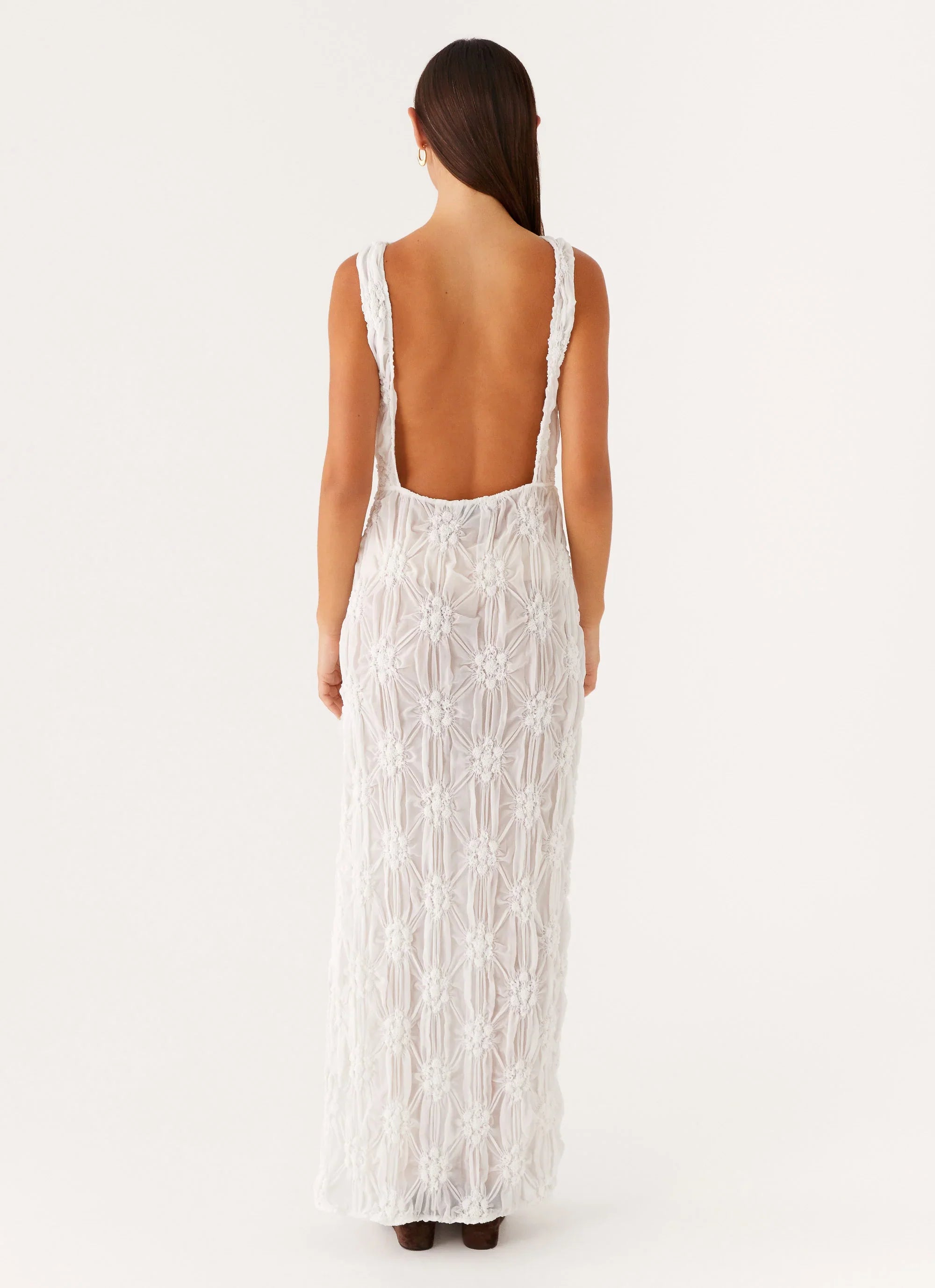 The Briar Backless Maxi Dress exudes sultry elegance. With a rounded neckline, an open back, and semi-sheer fabric, it’s made to captivate under golden skies and glow in the night’s embrace.