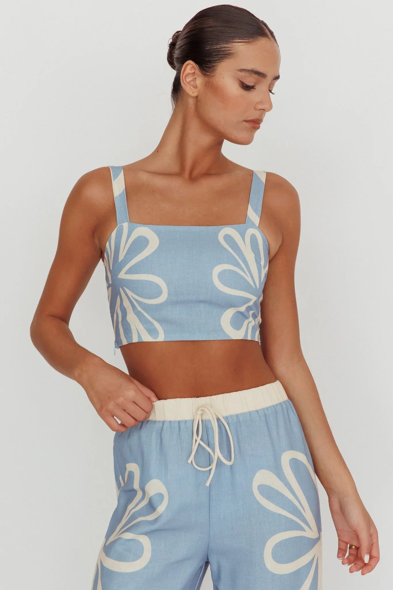 Elevate your spring-summer wardrobe with our must-have Briar cropped top. Its graphic floral print and lightweight fabric make it perfect for lounging by the pool or hosting a backyard barbecue. Effortlessly versatile, style this shirt with the matching pants to dress with ease or mix and match for endless possibilities. This is the ultimate companion for sunny days and breezy evenings.