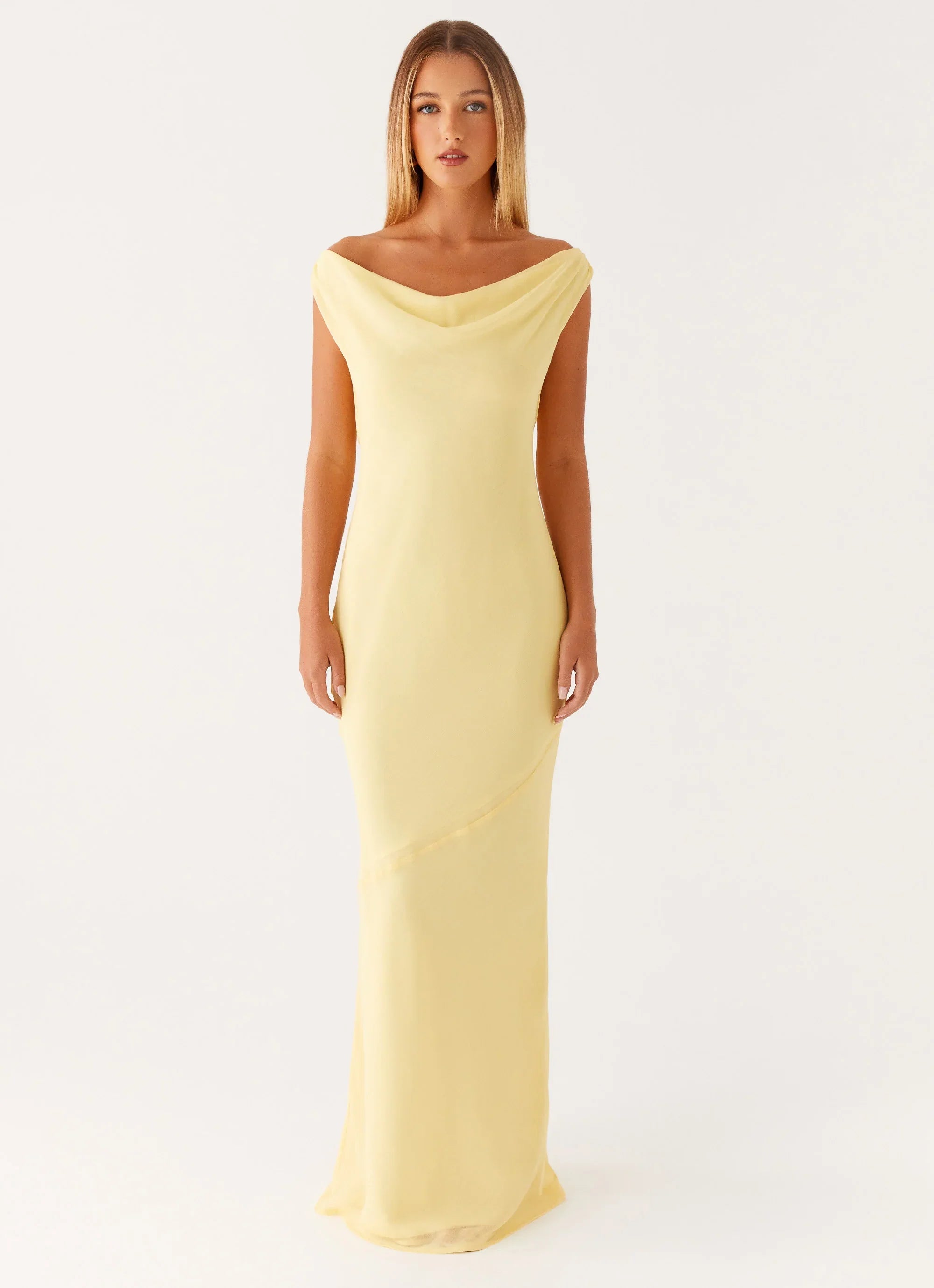 Meet the Brittany Chiffon Maxi Dress. With an effortlessly elegant off-shoulder neckline and a sultry low back, this fully lined design drapes beautifully, made to captivate from sunset to sundown.