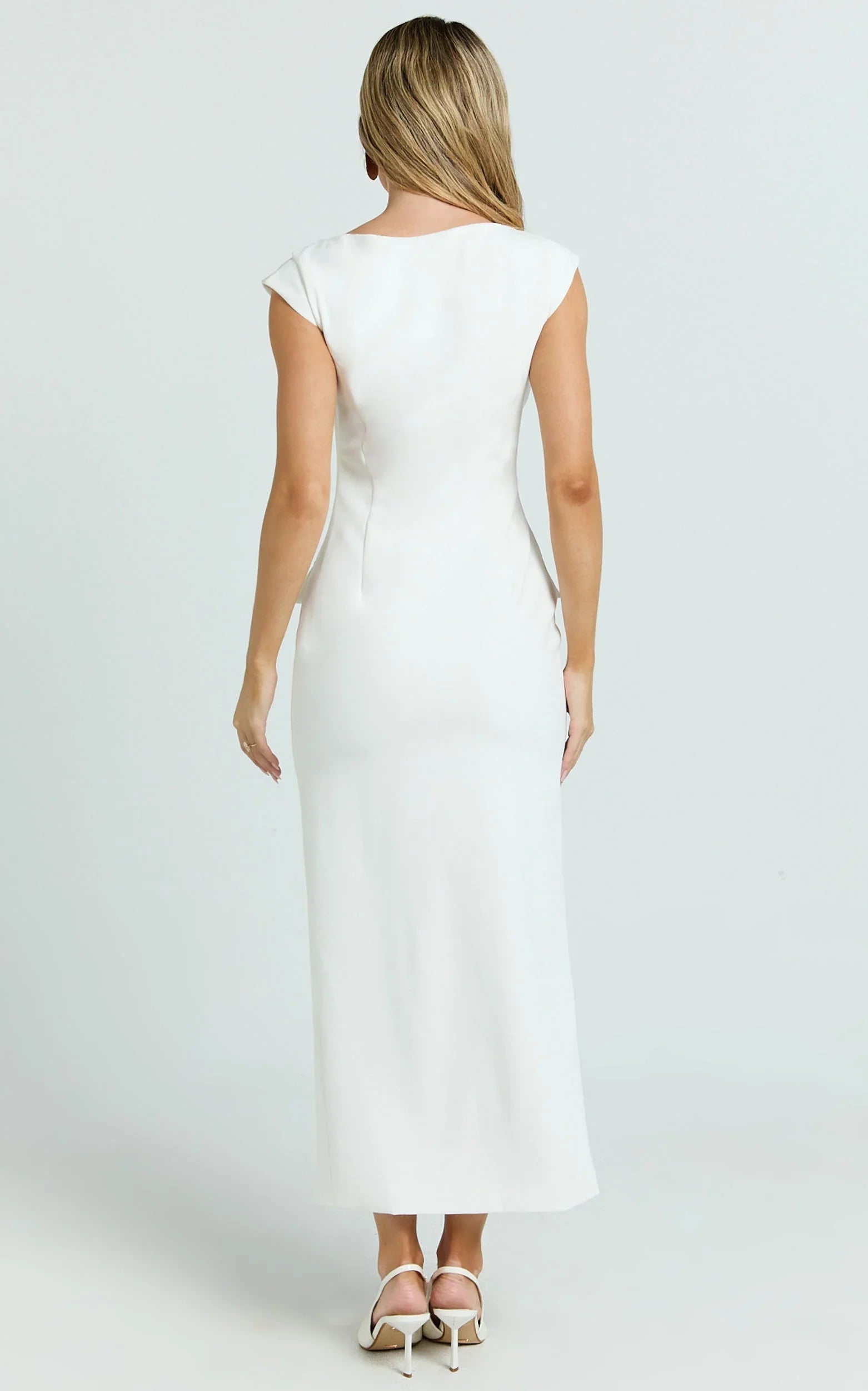 Calista Midi Dress brings quiet luxury vibes that pair seamlessly with current trends, style with mesh flats for an on-the-pulse finish or dial up the contrast with rich browns in your accessories. From work events to long lunches, this polished piece keeps it chic, minimal, and effortlessly elevated.