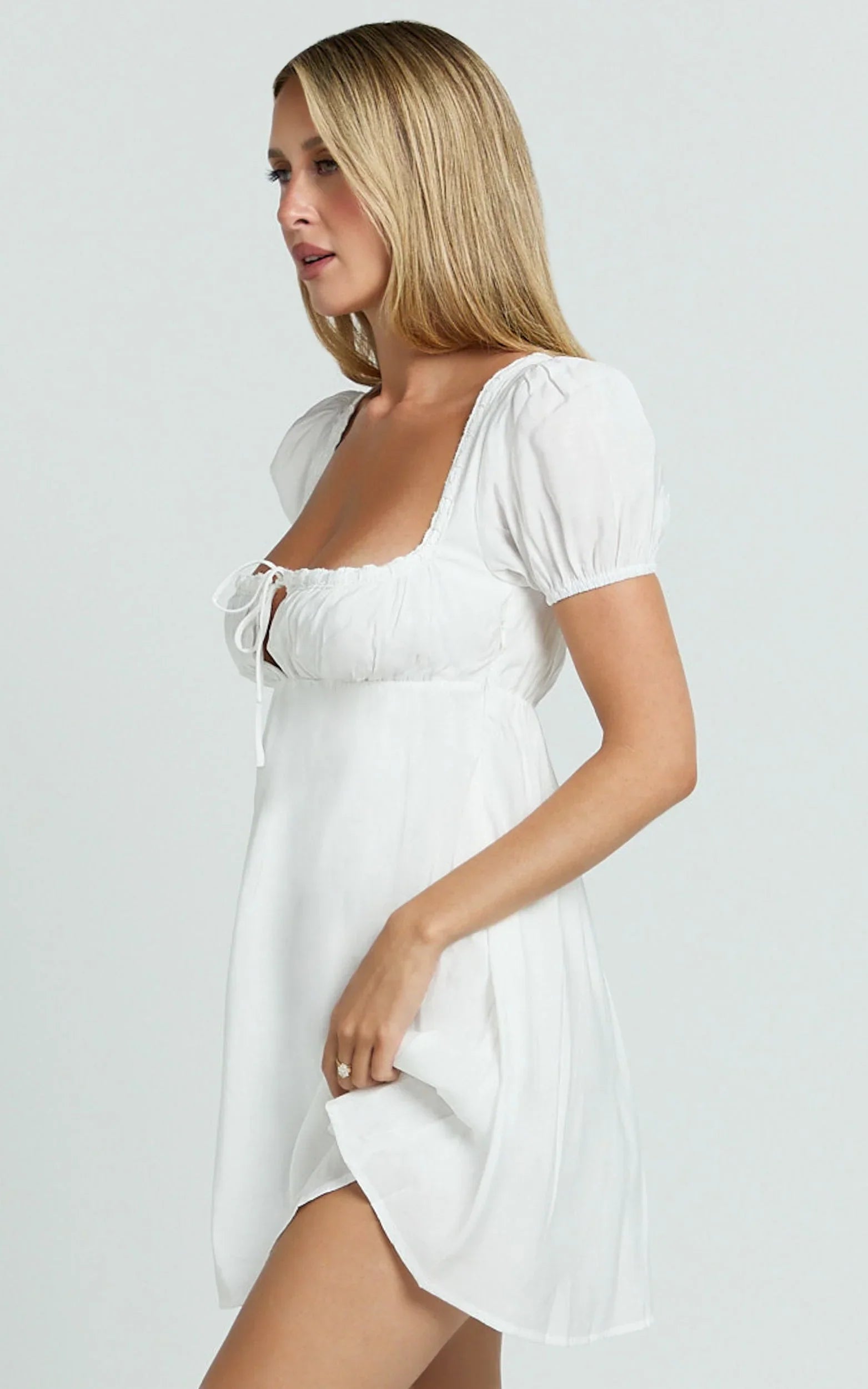 Meet your new go-to mini for Summer whites season, airy, flirty, and made for spontaneous plans. With its square neckline and babydoll silhouette, this white mini brings instant ease and a playful vibe that works from brunch to beach strolls. It’s the kind of Dresses moment that flatters without trying too hard, catching the light and keeping things fresh.