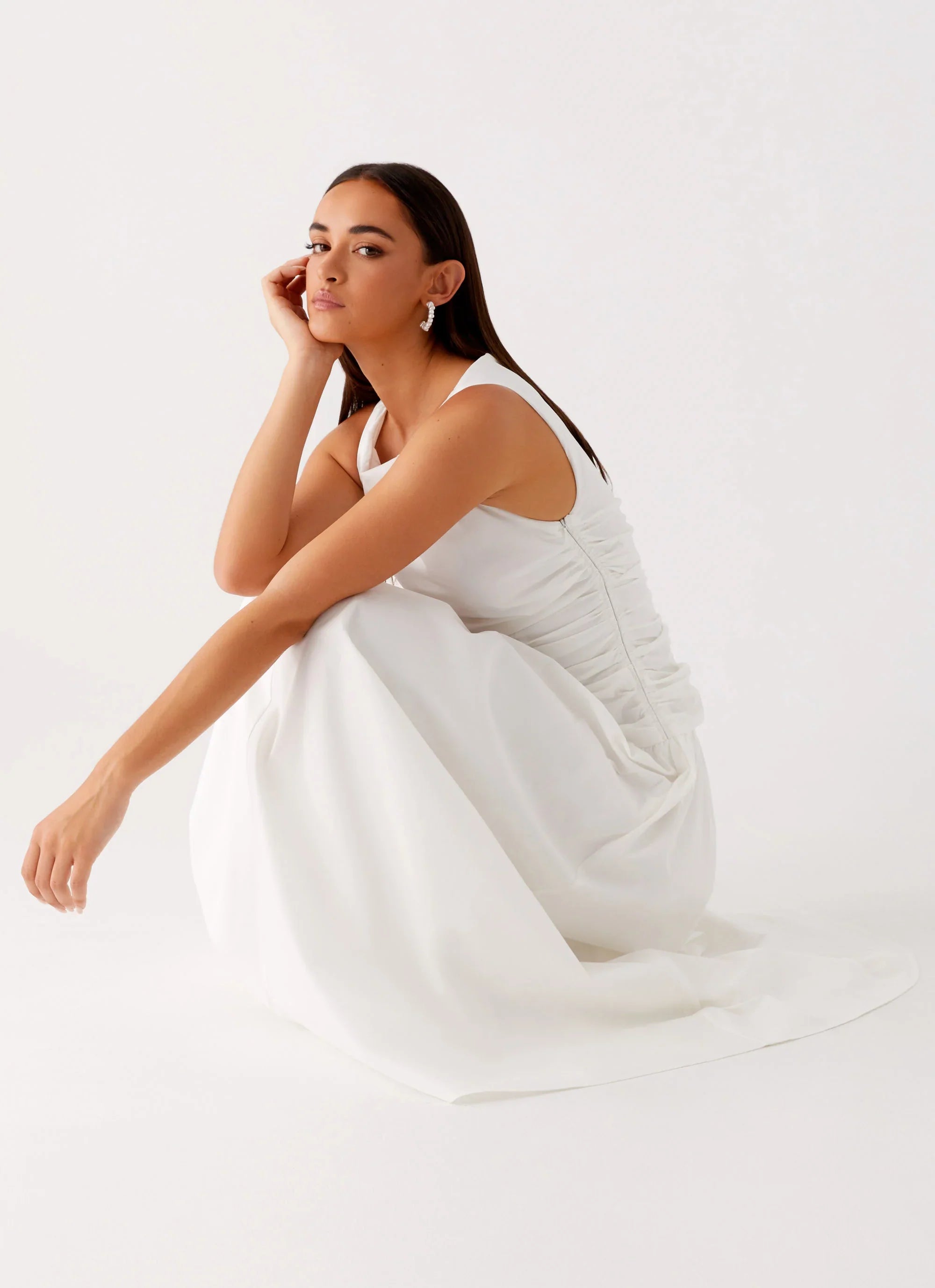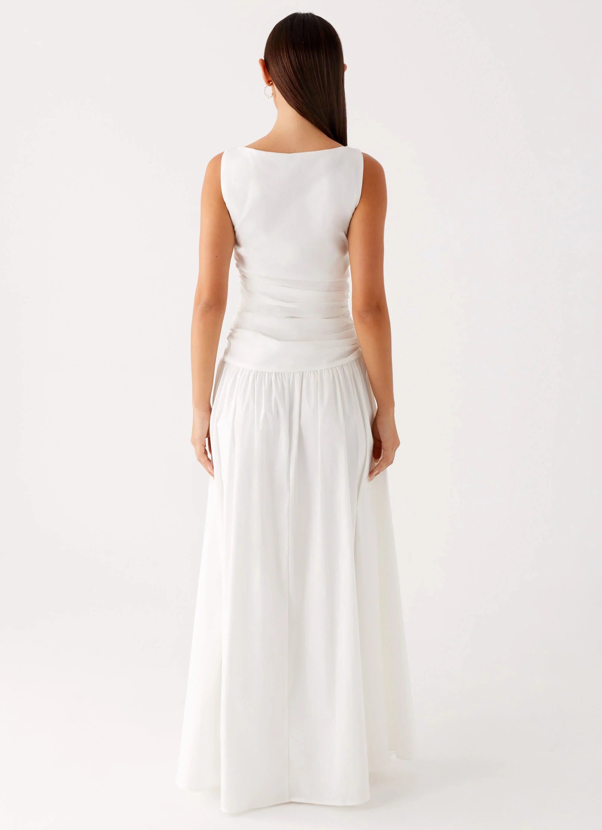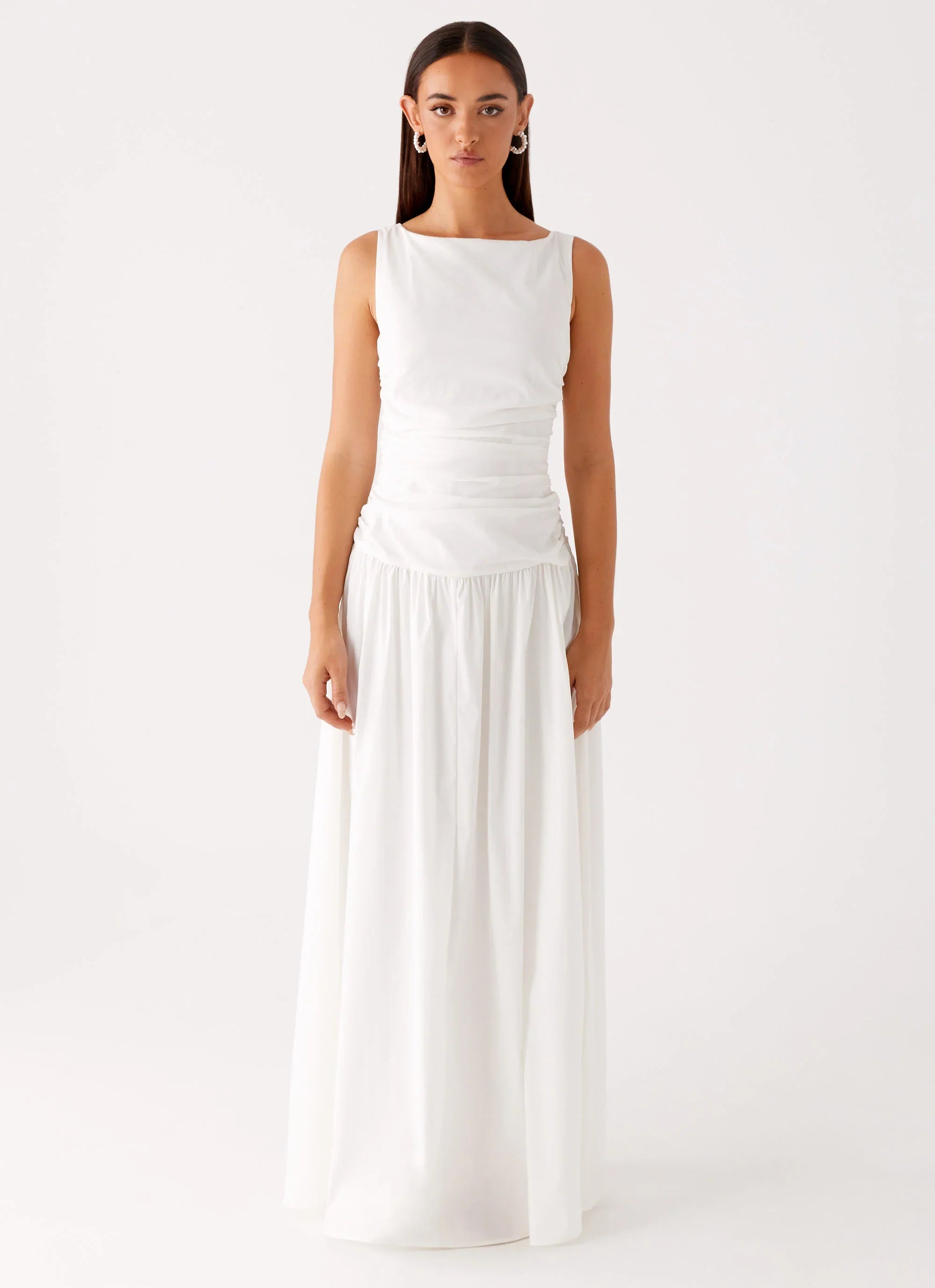 The Carmel High Neck Maxi Dress is a blend of sleek sophistication and subtle allure. Featuring a refined boat neckline and side bodice ruching that hugs and flatters the figure, it's designed to move with you from sunset to city lights.