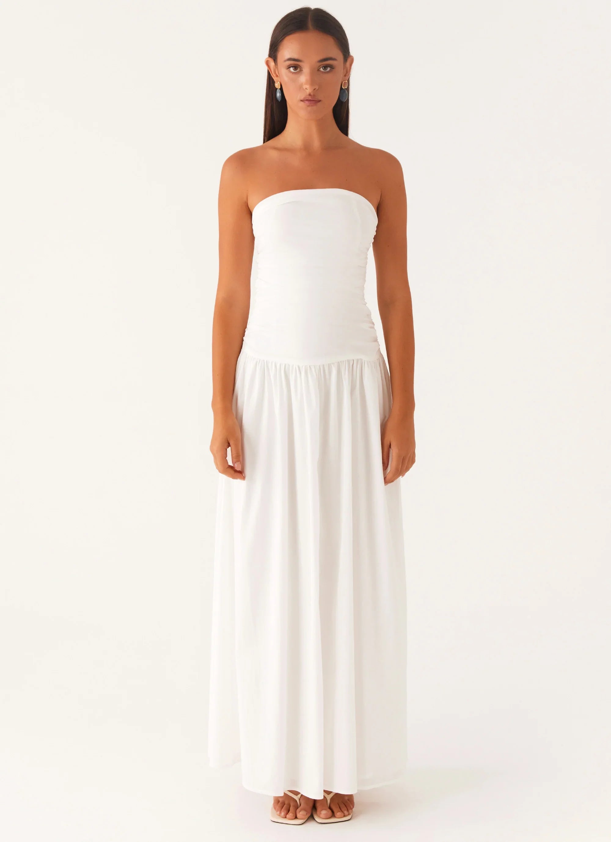 The Carmel Maxi Dress is elegance with a bold twist. Featuring ruched sides, a draped waist, and a strapless neckline, it’s designed to make a statement from sunset to sundown.