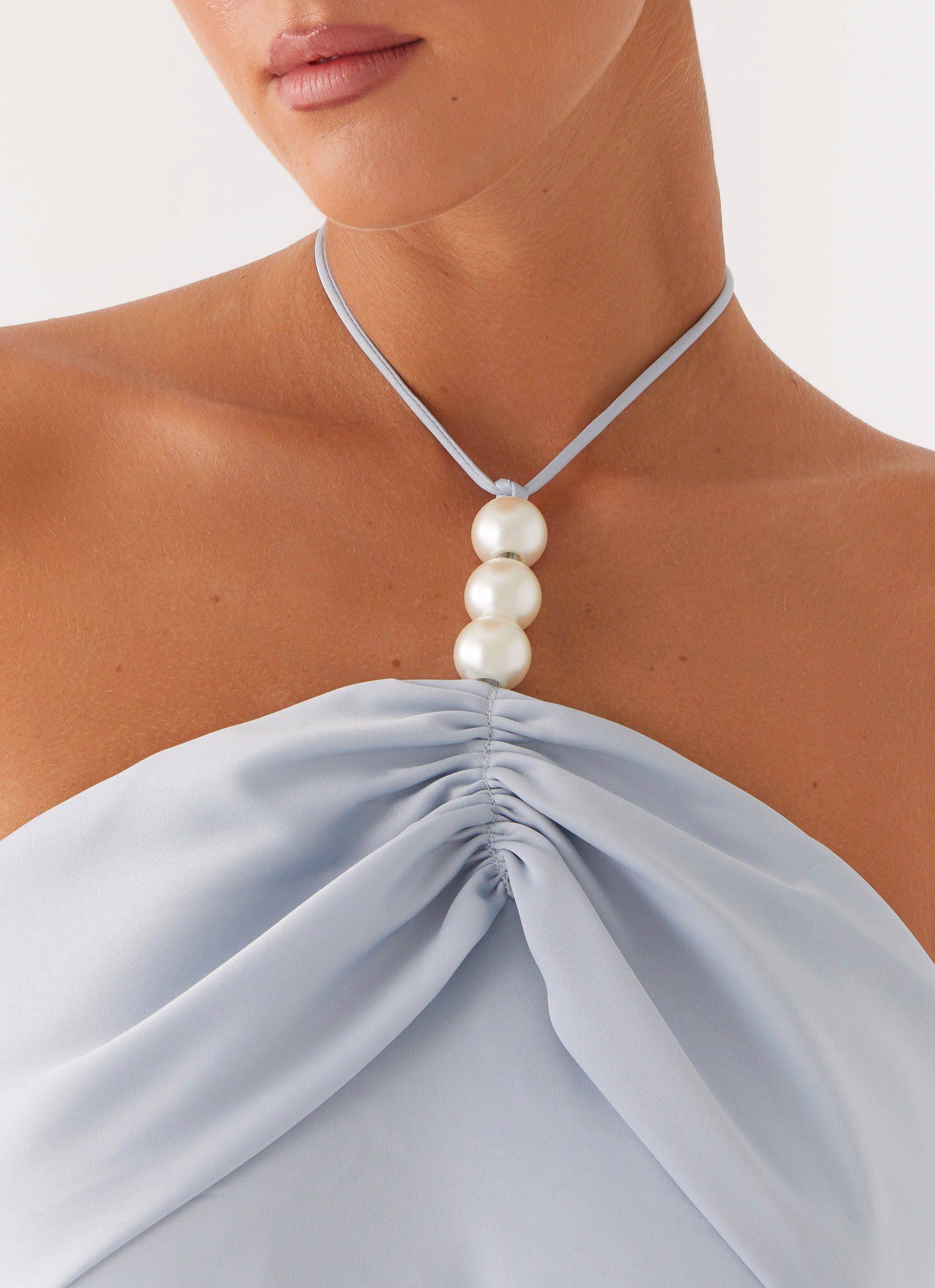 The Cecelia Mini Dress features a chic halter neckline adorned with beaded straps, adding a touch of elegance and sparkle. Perfect for evening events or a night out, this dress combines style and sophistication with a flattering silhouette.