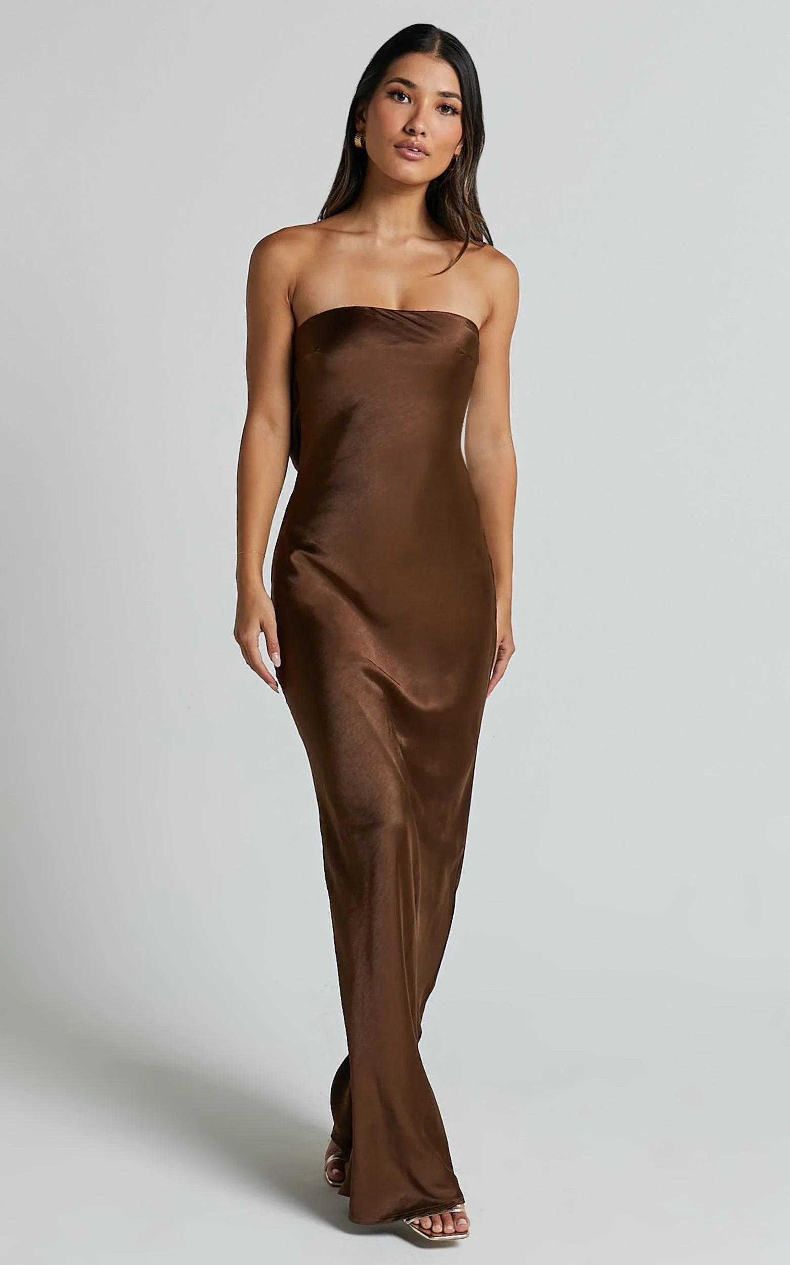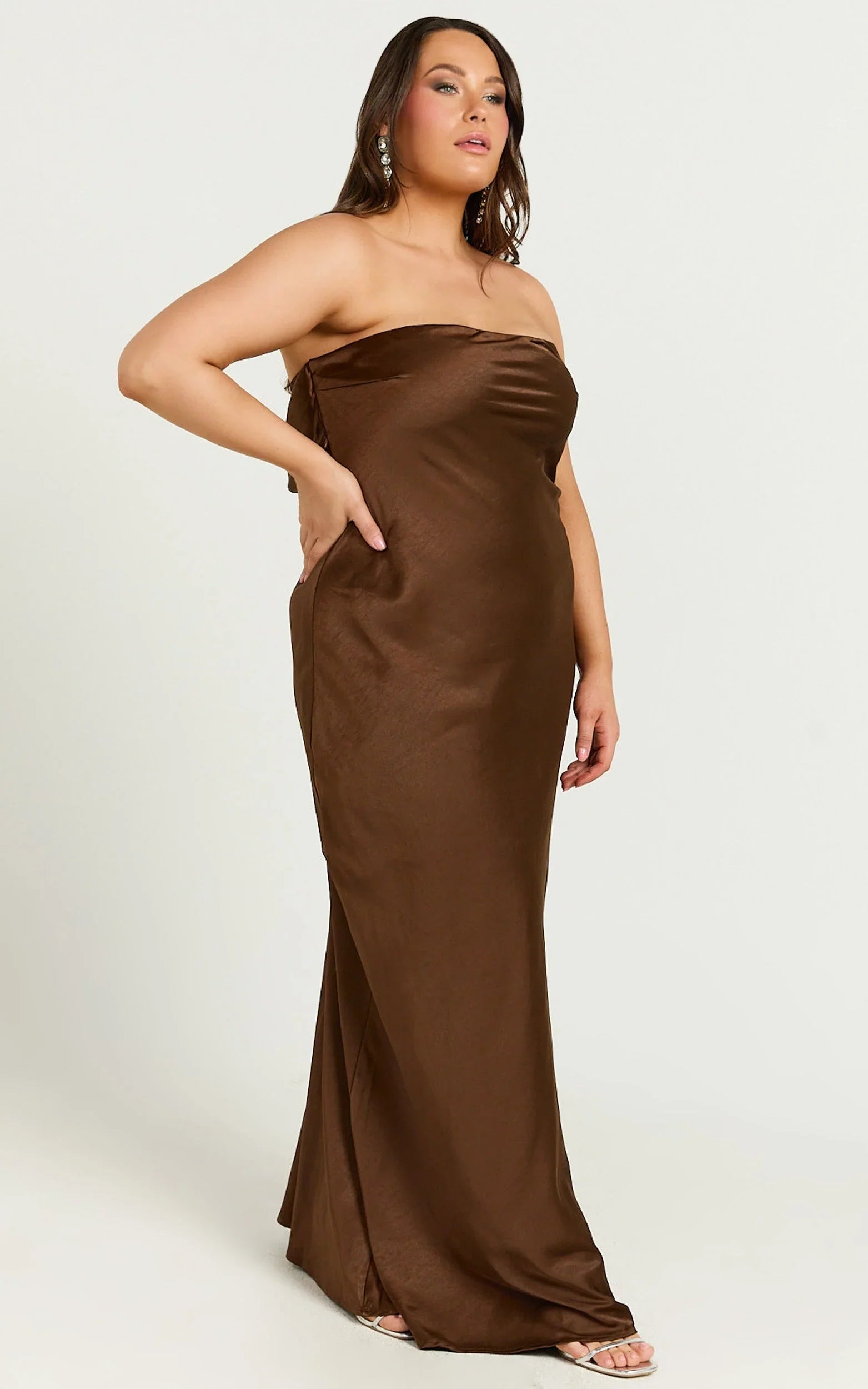 Style the Charlita with heeled flip-flop vibes or mesh flats to tap into trending cues, and finish with a bow-detail clip or raffia bags for a soft, feminine contrast. The elegant brown tone flatters every skin tone, while the fluid silhouette skims and elongates for a confident, camera-ready finish. Effortless glamour, maximum payoff.