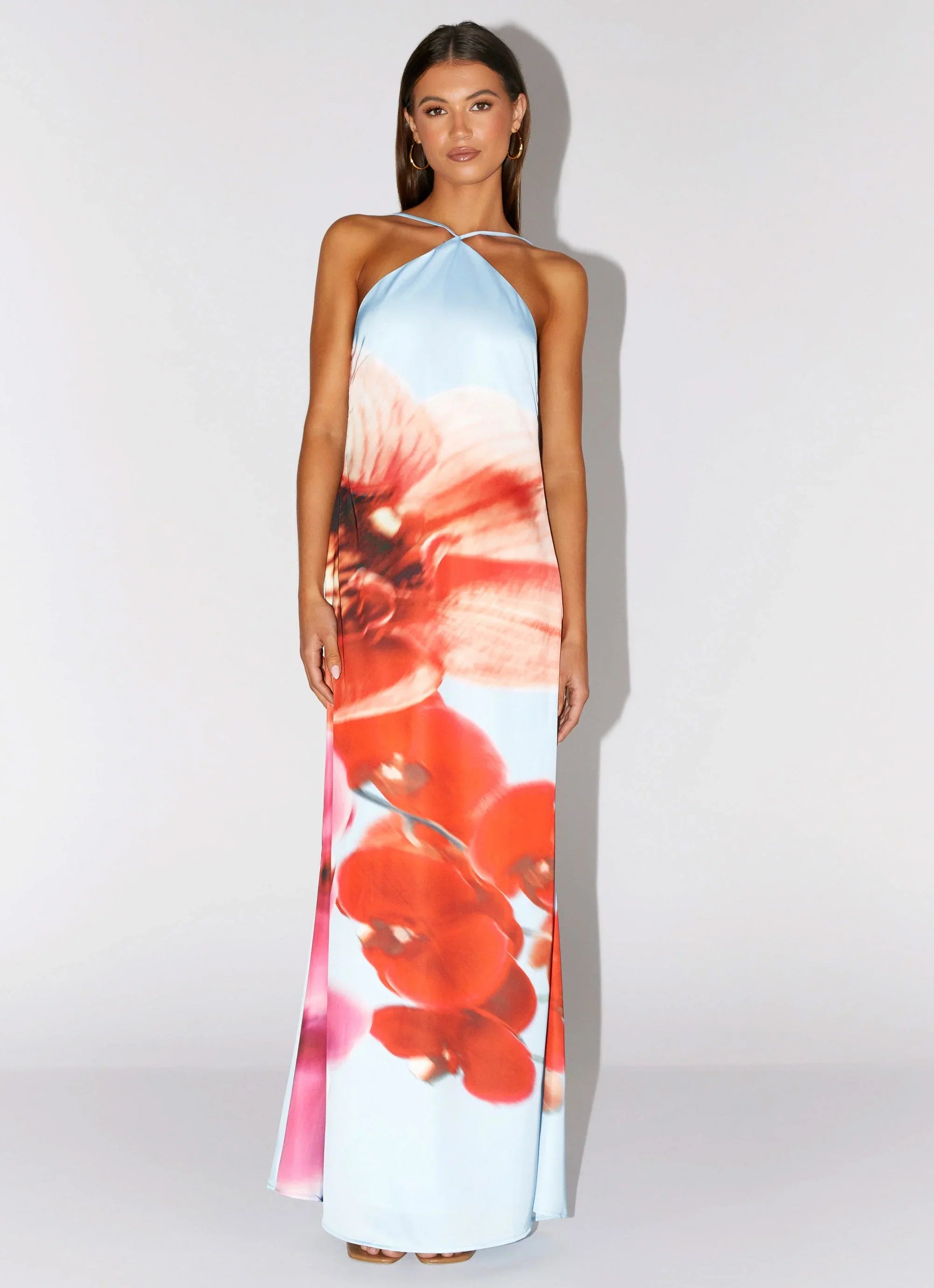 The Chloe Maxi Dress is made for nights that flow with ease. Featuring a halter neckline and exclusive print, this loose-fit maxi dress offers effortless style and comfort.