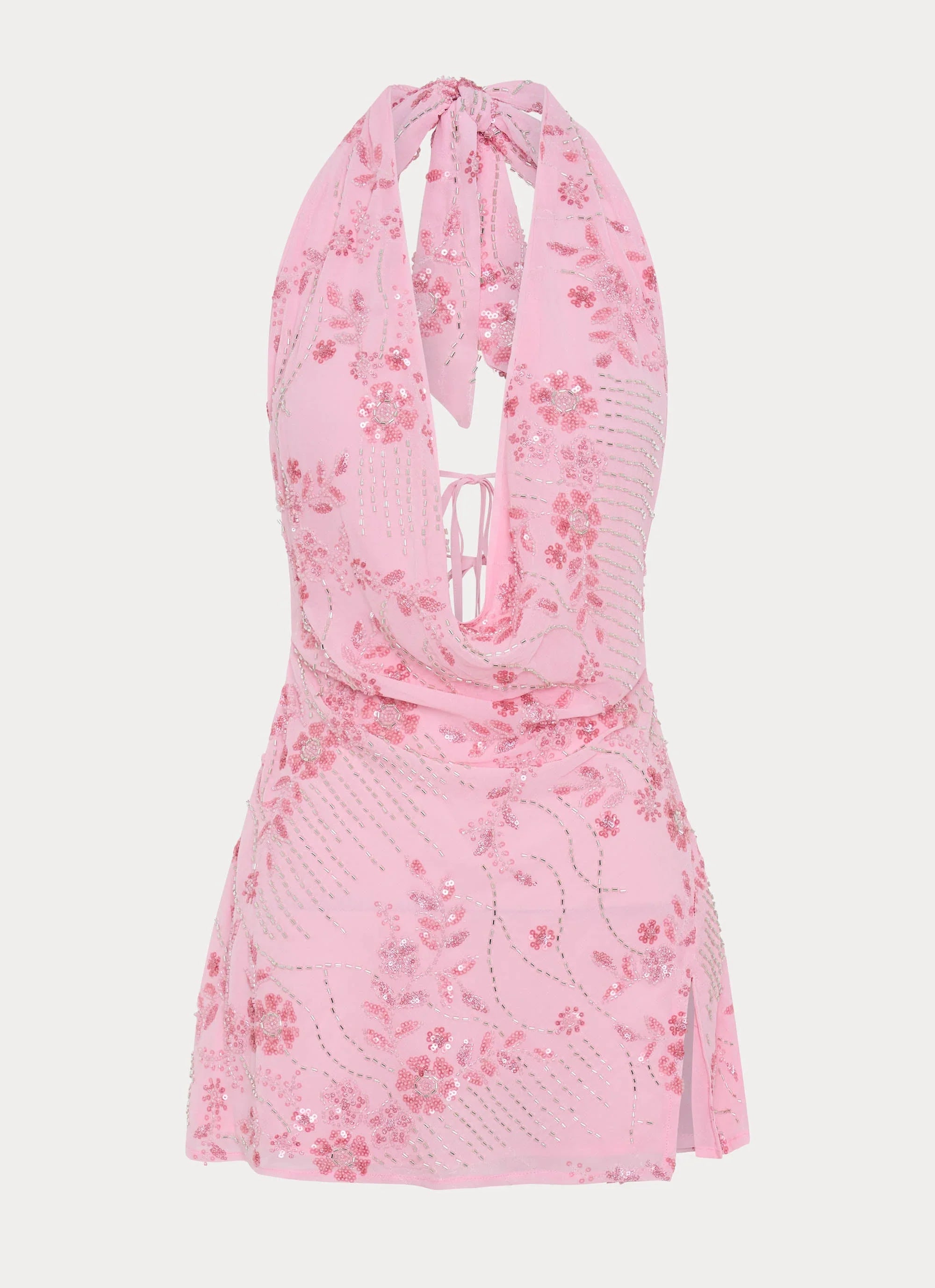 The Cinzia Beaded Mini Dress is a dazzling statement piece. Featuring an open back with a chic twin tie detail and a fully lined design, it hugs your figure perfectly. Made for golden skies and unforgettable nights, this dress is designed to sparkle and shine from sunset to sundown.