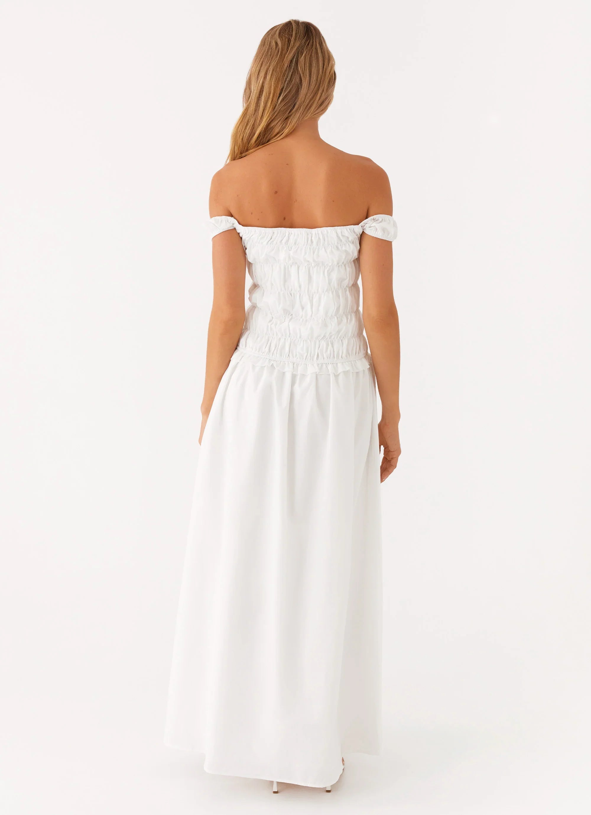 Step into elegance with the Countryside Off Shoulder Maxi Dress, featuring a graceful off-shoulder neckline that beautifully highlights your shoulders. The drop waist and ruched bodice create a flattering silhouette that flows effortlessly.