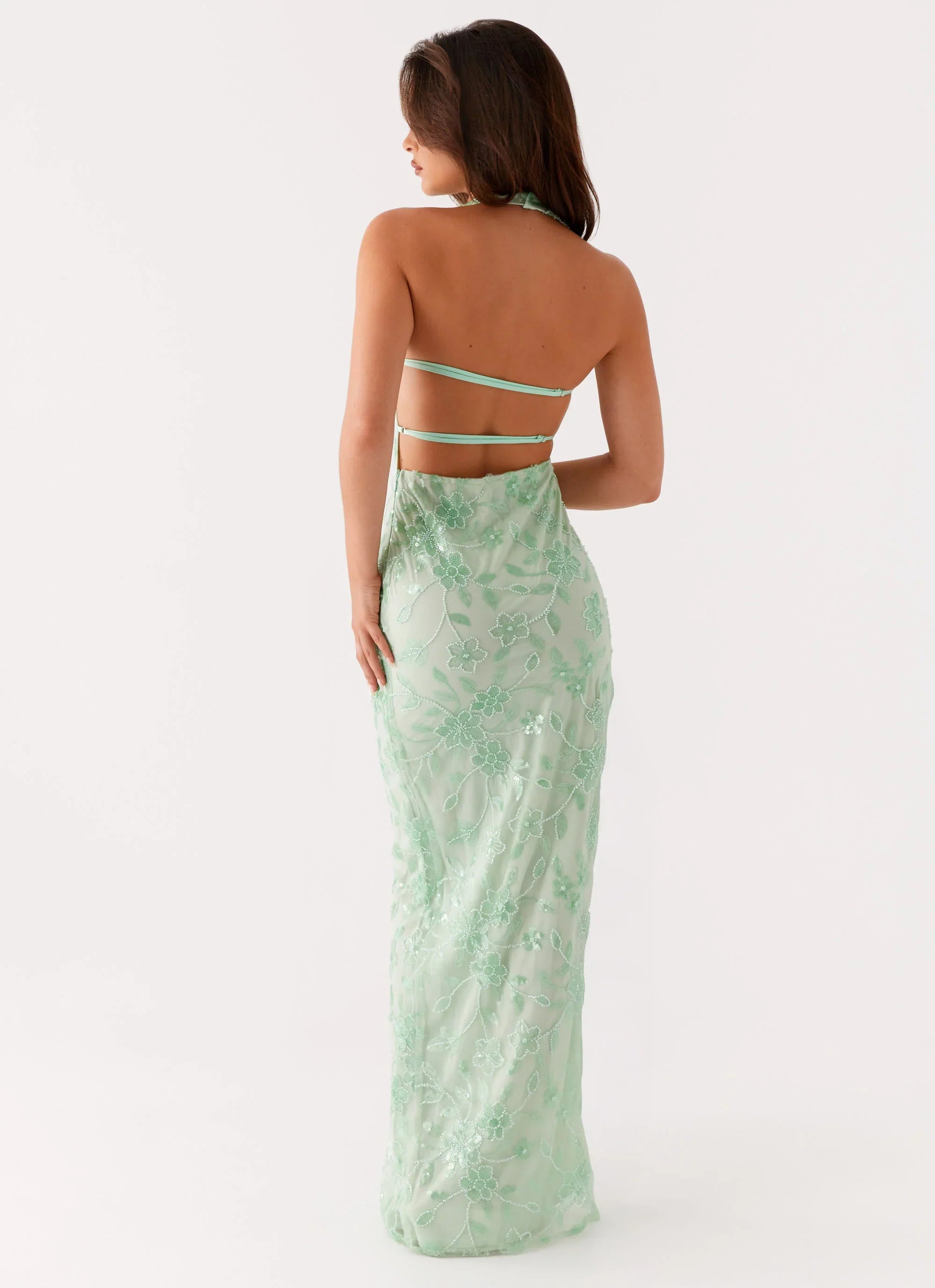 The Cydney Beaded Maxi Dress exudes glamour and allure. Featuring a daring low V-neckline and an open back, this dress creates an enchanting silhouette that demands attention. The intricate beading adds a touch of sparkle, making it the perfect choice for evening events or special occasions.