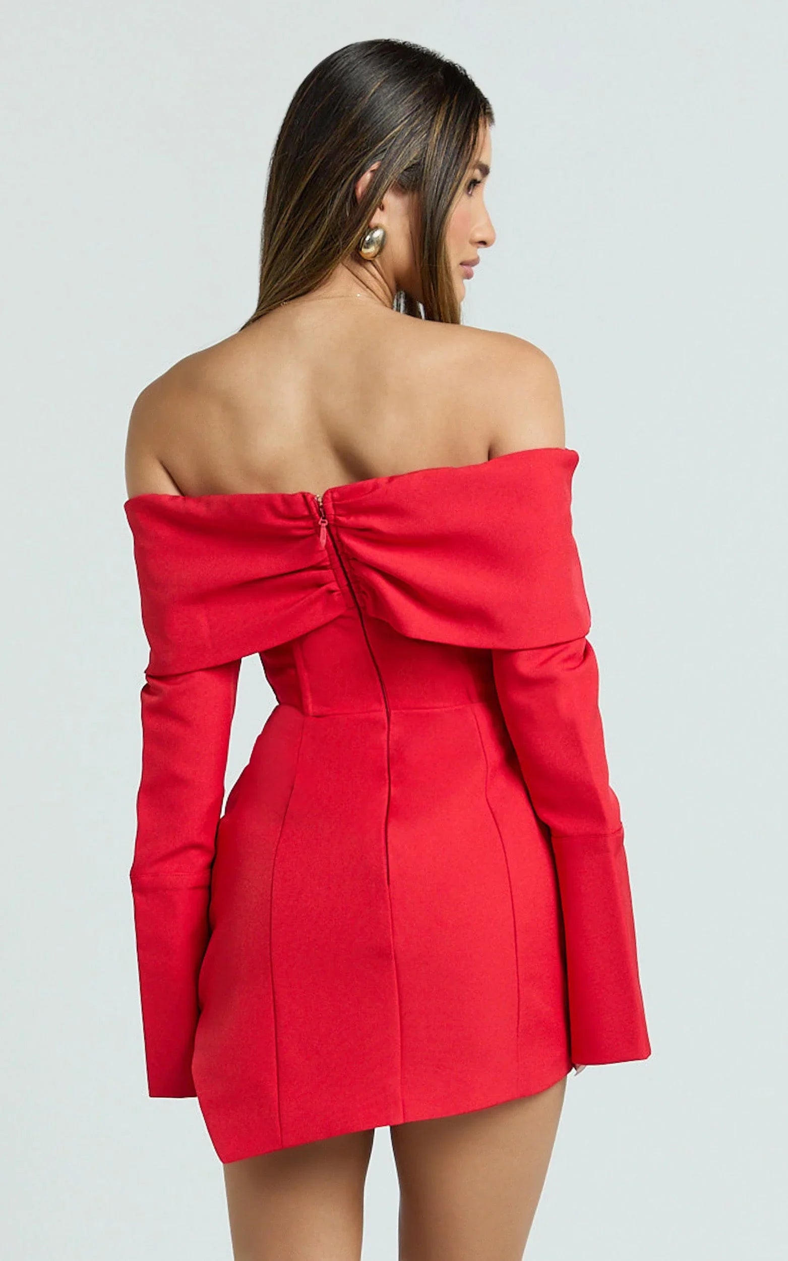 The off-shoulder neckline paired with long sleeves creates a dreamy fit and flare silhouette that’s made for twirling through Euro summer style parties or date nights.