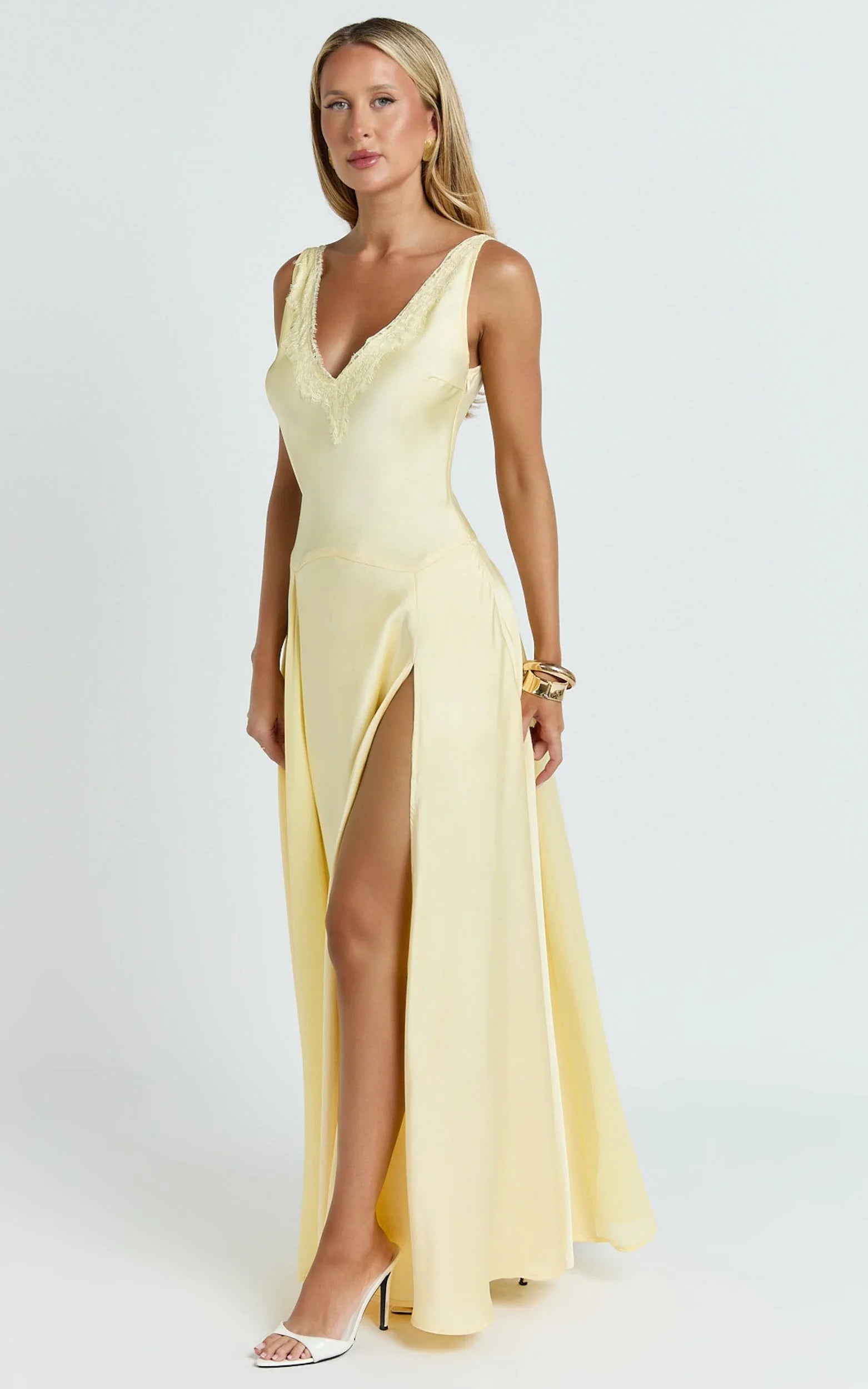 This lace-trim drop waist maxi in a fresh lemon hue brings effortless romance with a flirty silhouette that floats from brunch to garden parties. The soft Yellow tone taps into Sheer Beauty vibes while the delicate trim keeps it feminine and photo-ready. Style it up with Oversized Bags for that statement proportion play and let your Dresses collection shine with a piece that’s equal parts dreamy and wearable.