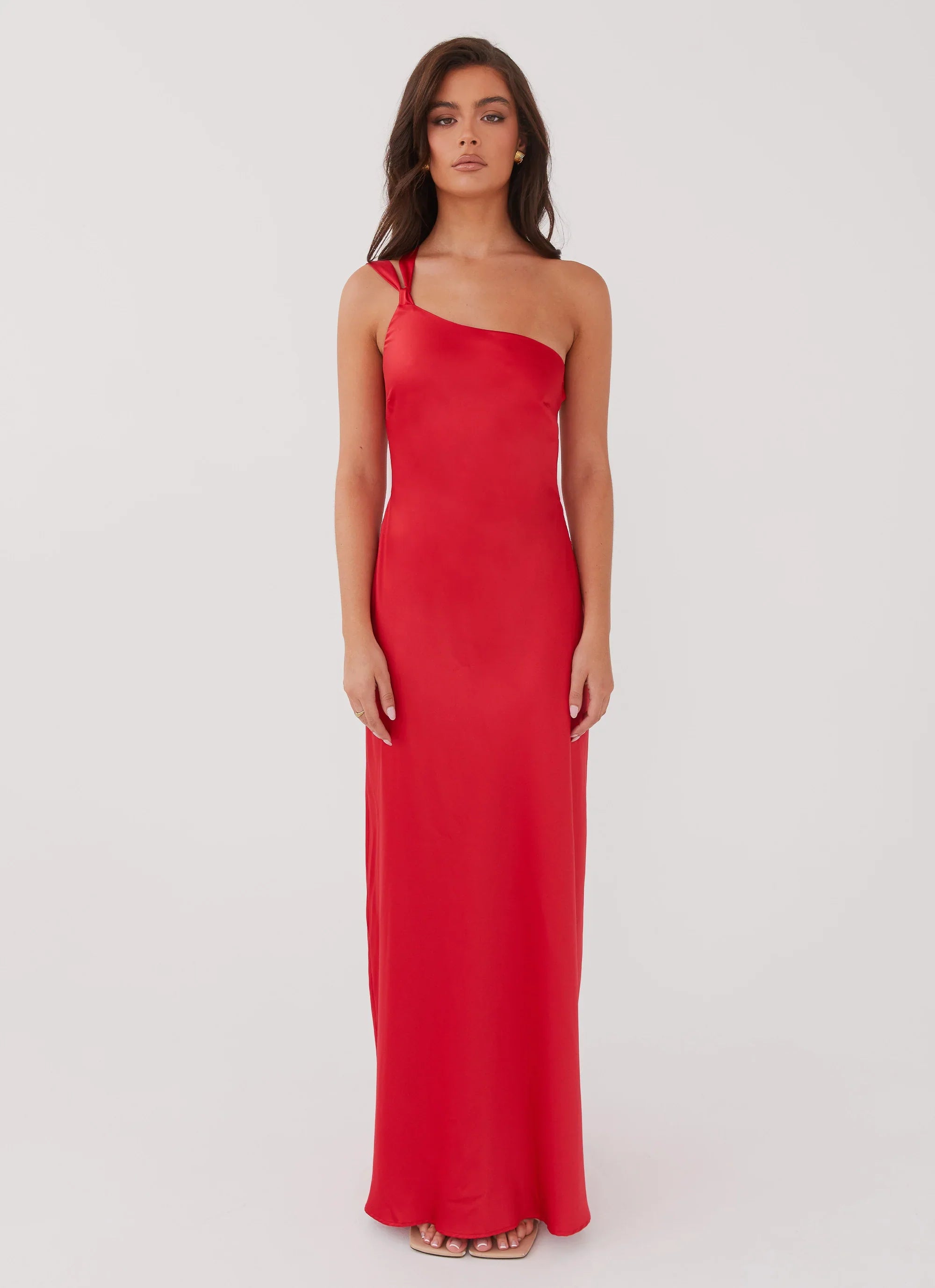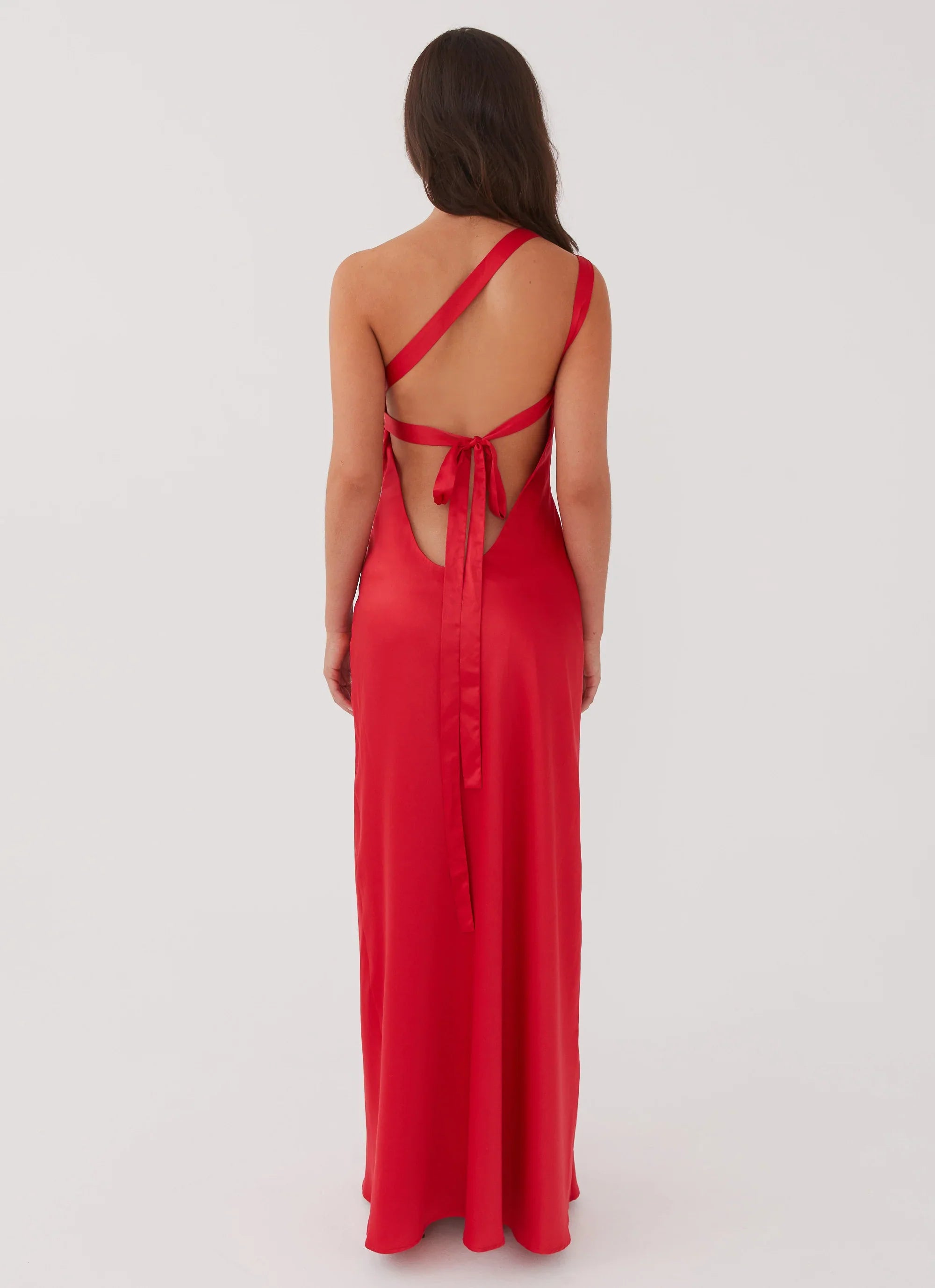 Introducing our Delancy One Shoulder Maxi Dress. Crafted from luxurious satin fabric and featuring a chic one-shoulder silhouette. With its flattering bias cut and elegant design, it's perfect for embracing golden skies, balmy nights, and the glamour of nightclub silhouettes.