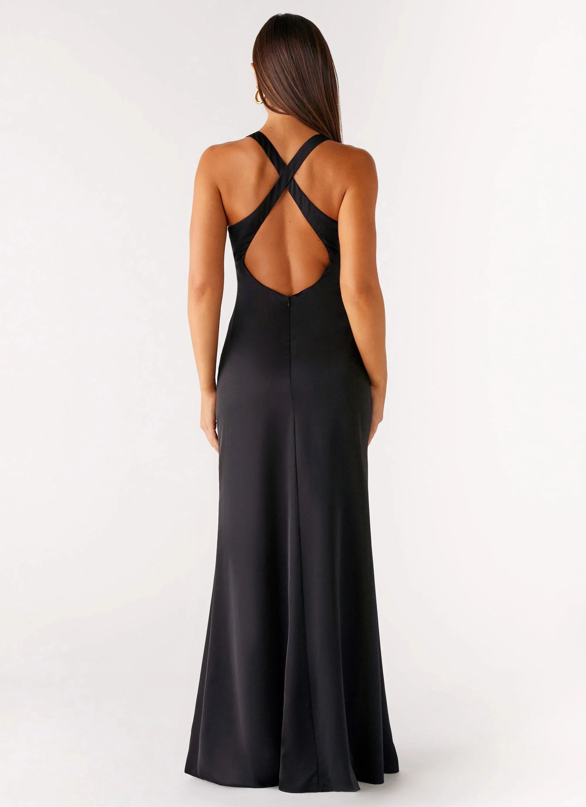 Sleek and striking, the Desi Halterneck Maxi Dress features a low V neckline and ruched underbust for a flattering fit. Designed with thick halter straps that criss cross at the back, this maxi is fully lined and finished with side hook-and-eye and invisible zippers.
