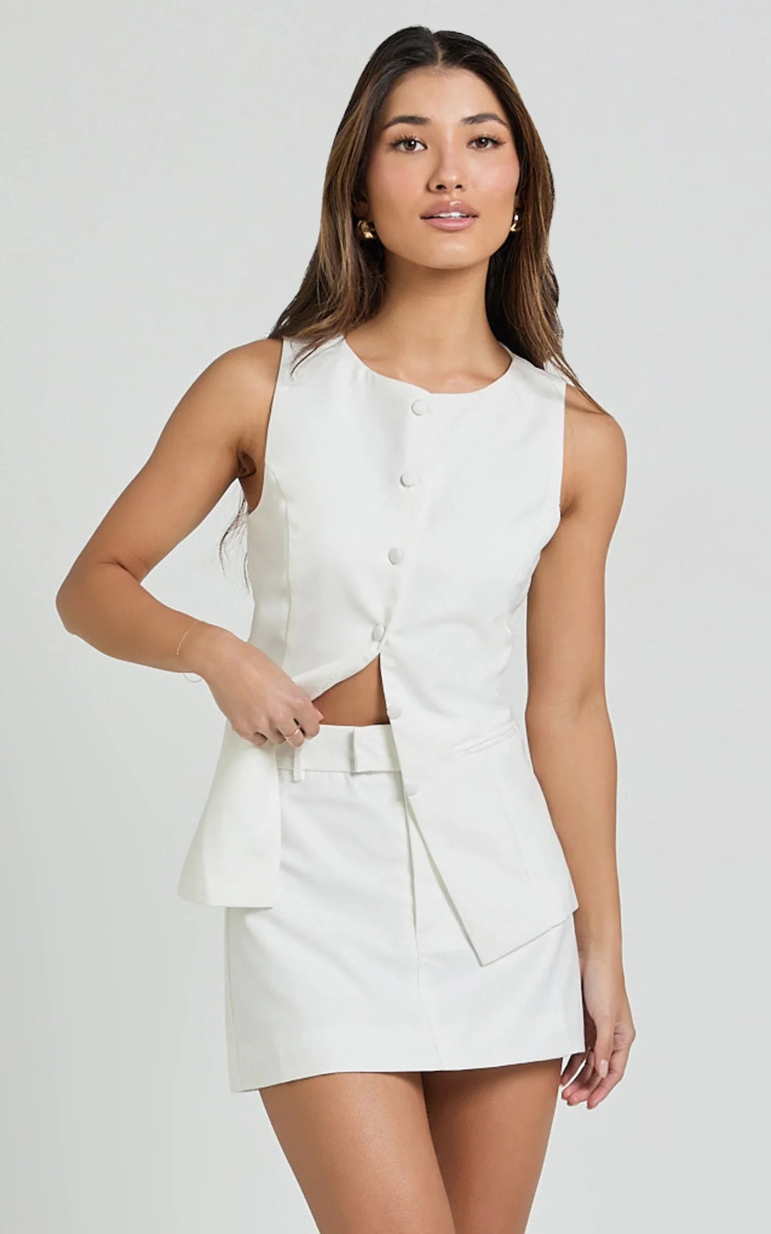 Transform your look with the Desi Mini Skirt - the ultimate addition to your wardrobe that effortlessly bridges the gap between sassy workwear and playful weekend vibes! Crafted in a stunning warm white twill, this skirt speaks volumes of elegance with a touch of spontaneity. Its polyester composition guarantees both comfort and durability, making it a reliable choice for girls on the go, whether you're powering through your workday or dancing through your nightlife.