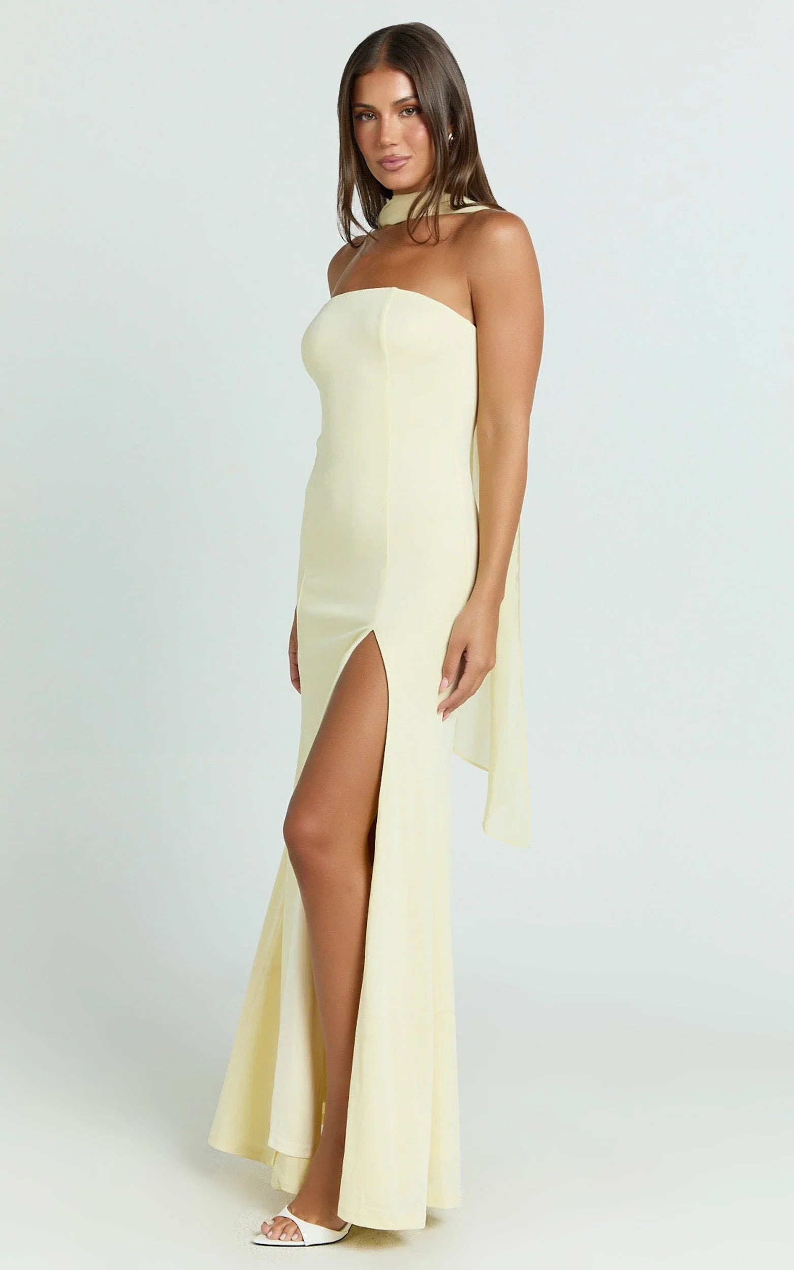 This fit-and-flare maxi in fresh lemon lifts your mood with a swishy skirt and effortless movement, while the delicate scarf detail adds flirty finesse. The elongated silhouette brings instant polish for weddings, garden parties, and every RSVP in between, Dresses that do the most, with zero effort.