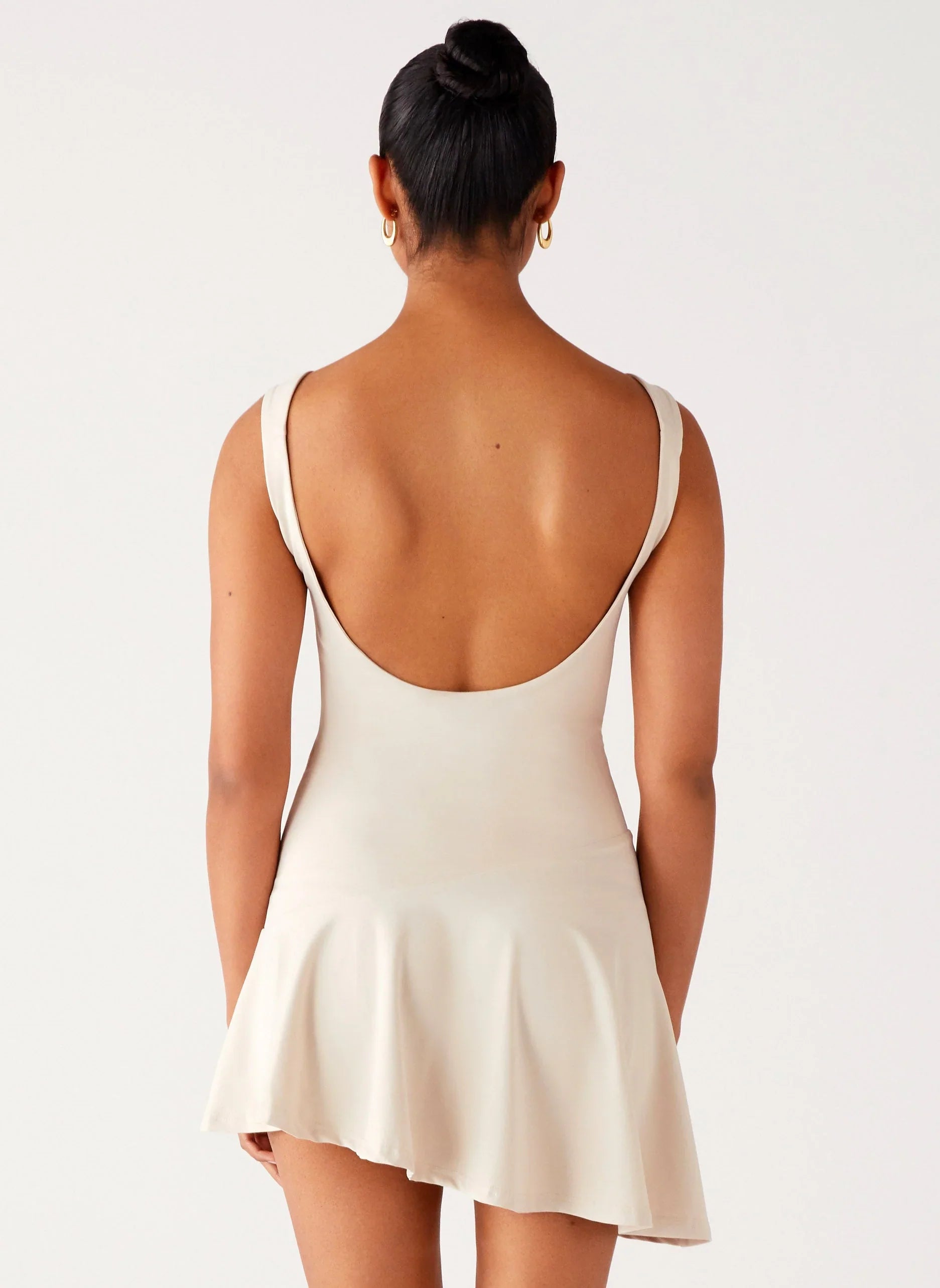 The Dune Whisper Mini Dress is made for nights that flow with you. Featuring a cowl neckline, thick straps, and a low back, it’s crafted from stretch jersey with an asymmetrical hemline and self-lined for comfort.