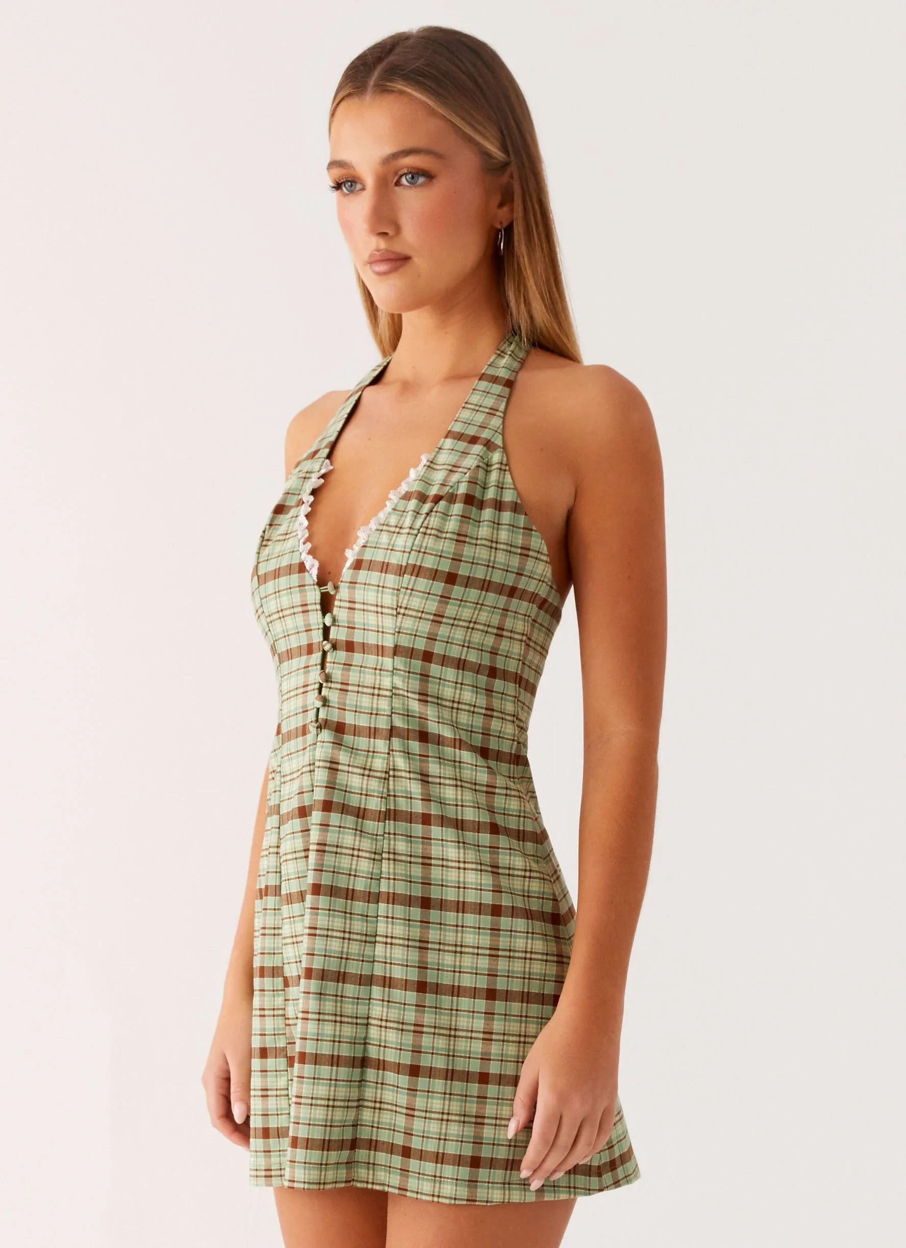 The Dunia Halter Mini Dress is a bold evening essential. Featuring a halterneck V neckline with delicate lace trim and front button detail, this fully lined dress is crafted in our exclusive print with an open back for a sultry silhouette.