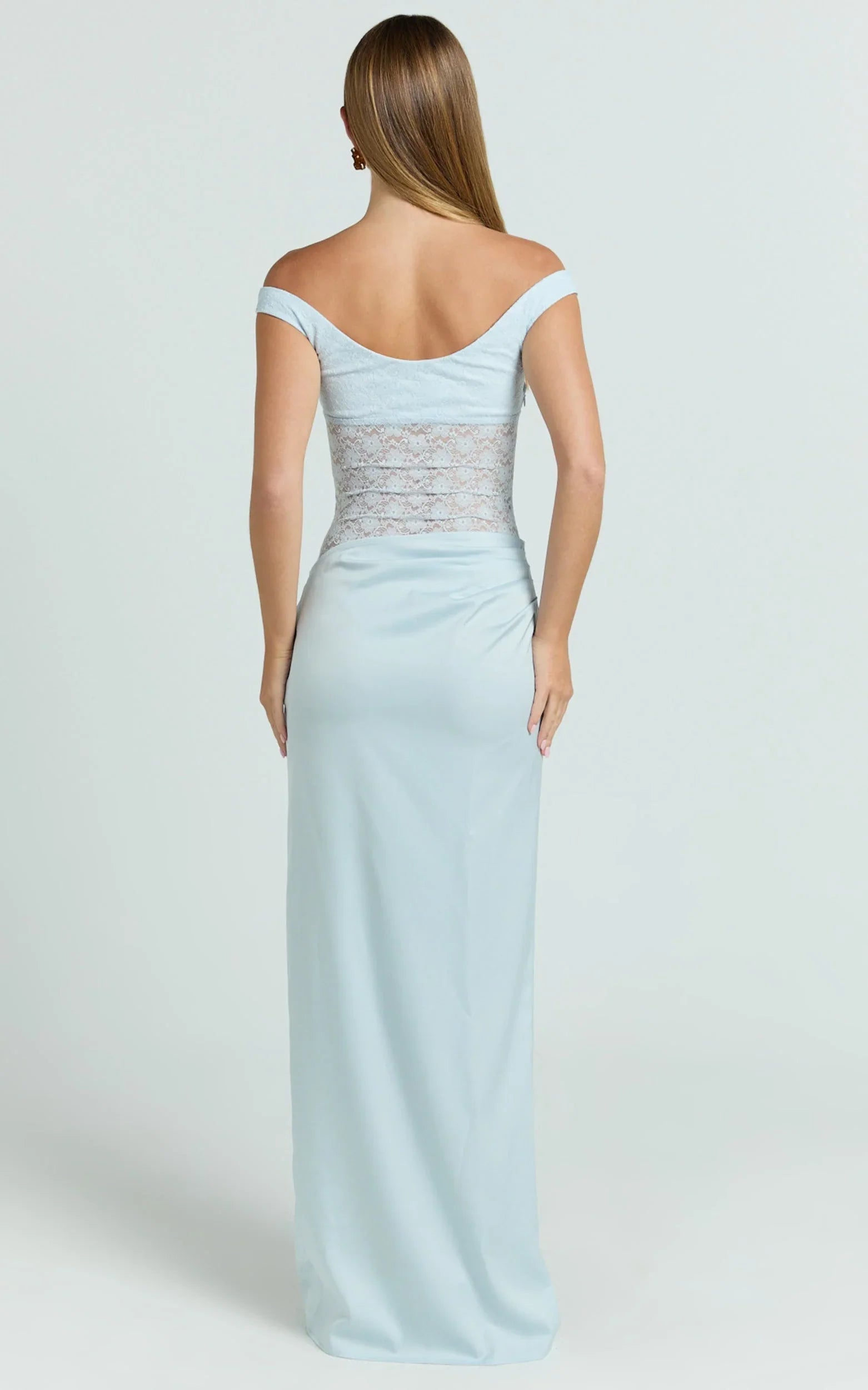 The Elara Maxi Dress in Soft Blue hugs in all the right places with a ruched bodice and a fluid side split that adds movement and a leg-lengthening finish. The lace detailing and dreamy pastel hue keep the look feminine and romantic, perfect for weddings, date nights, and every after-dark plan on your calendar. Elara levels up your dress rotation with a flattering, body-loving fit that feels elegant without trying. Style it with strappy heels and delicate jewellery for a polished event moment, or add a light shawl and a sleek clutch for an elevated evening look. Effortless to wear and easy to re-style, it’s the maxi that guarantees a best-dressed moment, every time.