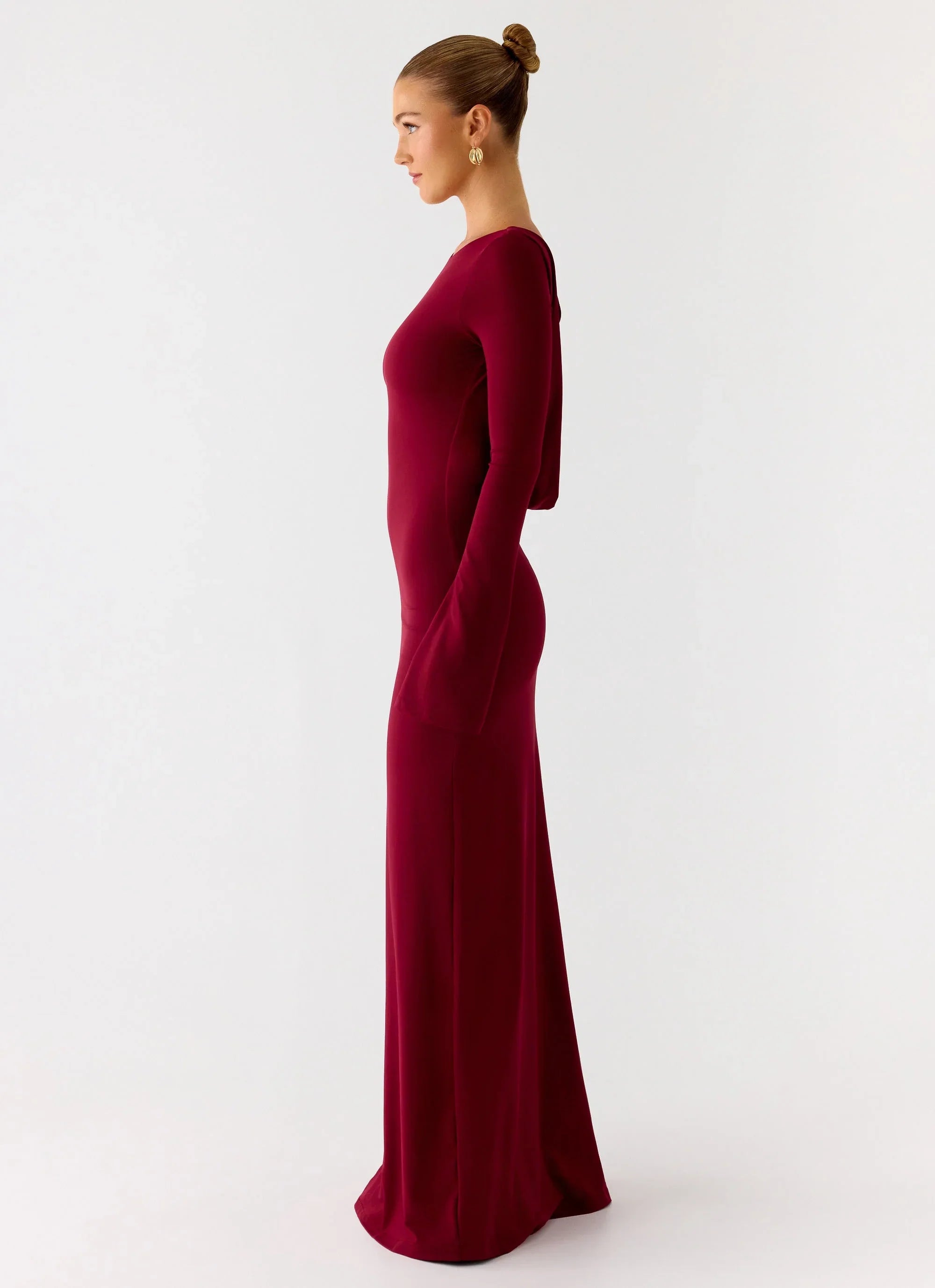 The Elmont Long Sleeve Maxi Dress is a sleek and elegant bodycon piece featuring a low cowl back. Fully self-lined, it combines long sleeves with a flattering maxi silhouette for a polished look.
