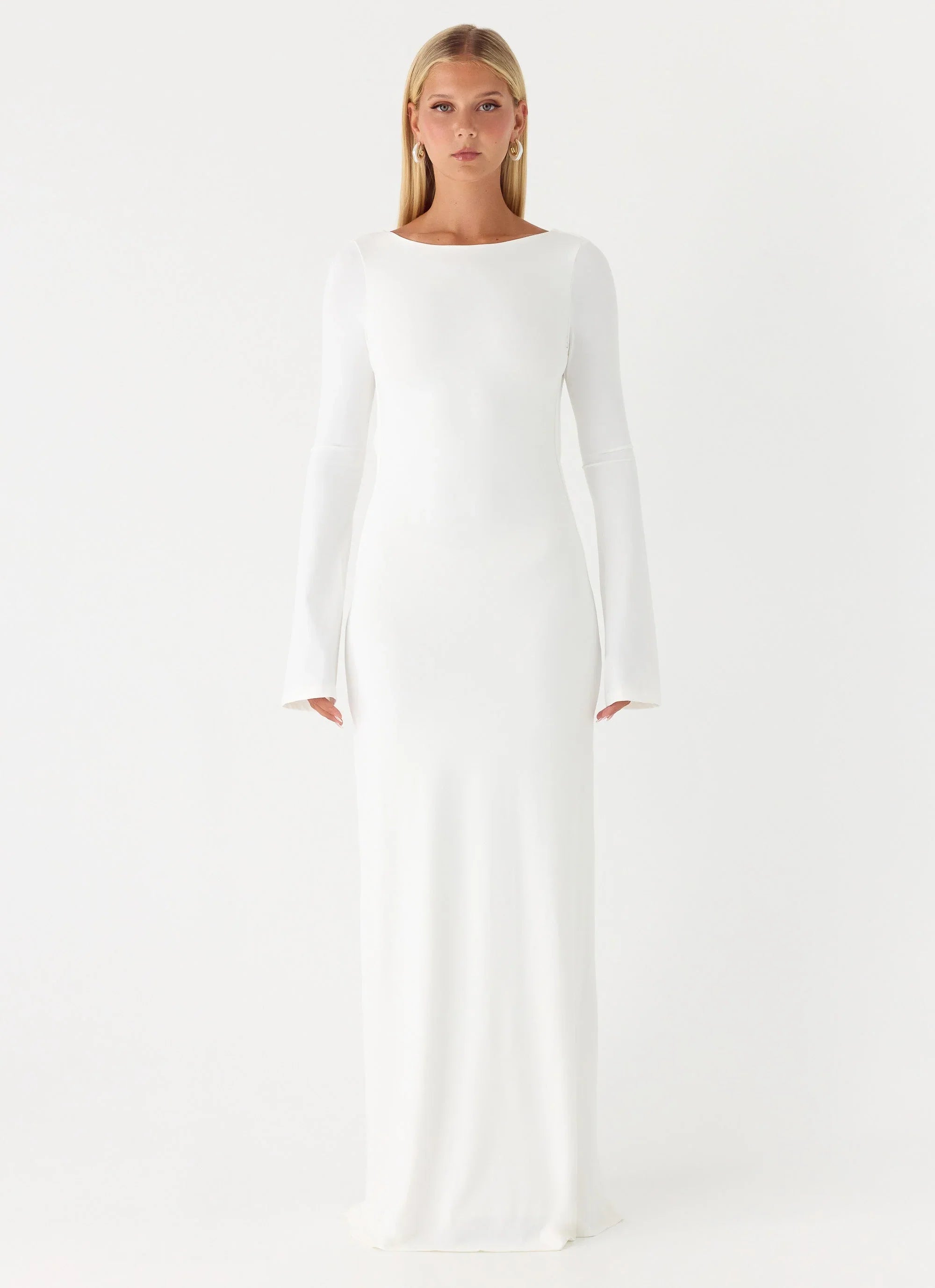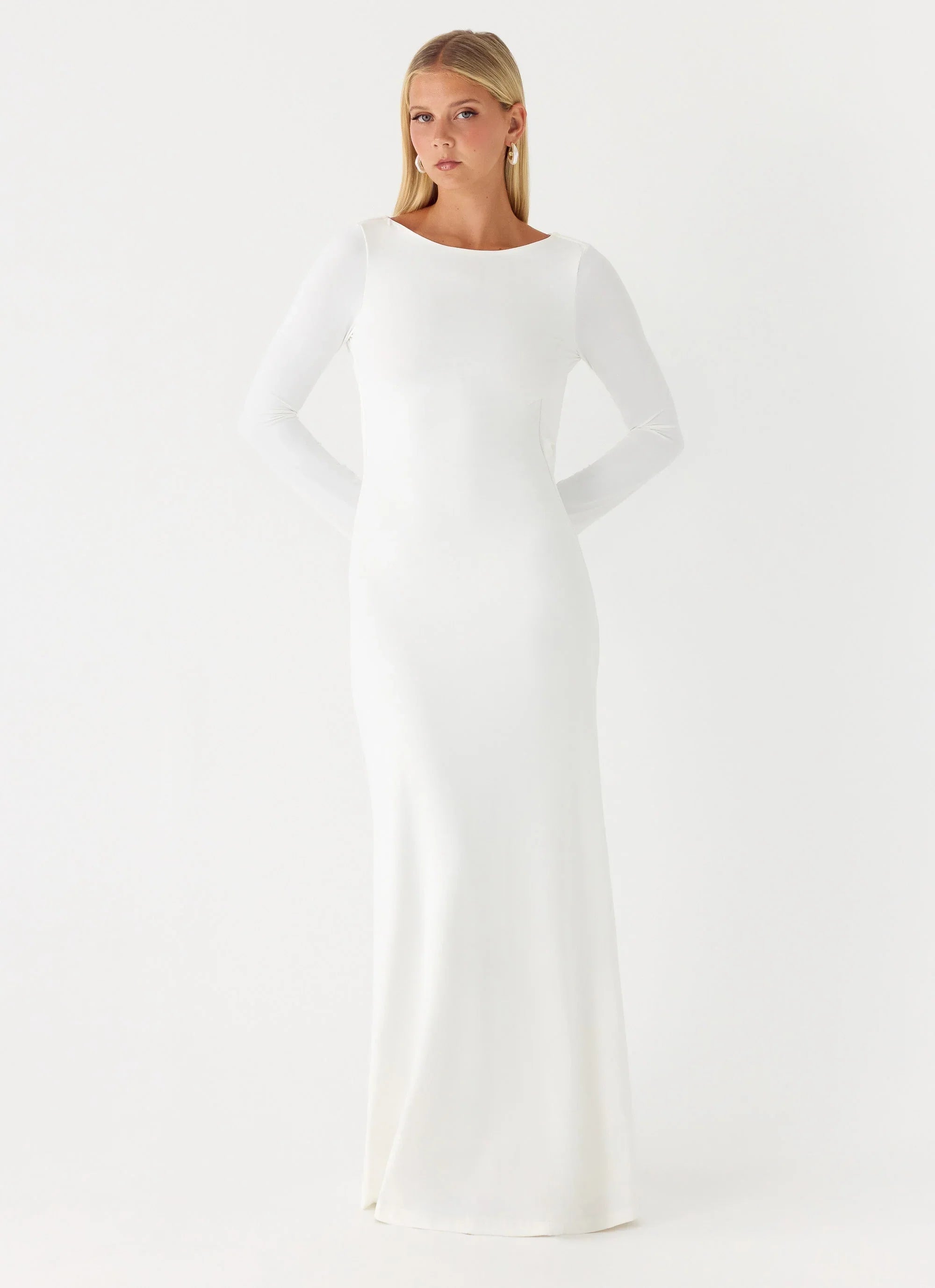 The Elmont Long Sleeve Maxi Dress is designed for effortless, sun-to-sunset style. Featuring a high-collared neckline with front button opening, loose fitted long sleeves, and front pockets, its maxi-length silhouette flows elegantly with a flattering open-back design. Fully lined and crafted in stretch polyester, it offers comfort and style for day-to-night wear.