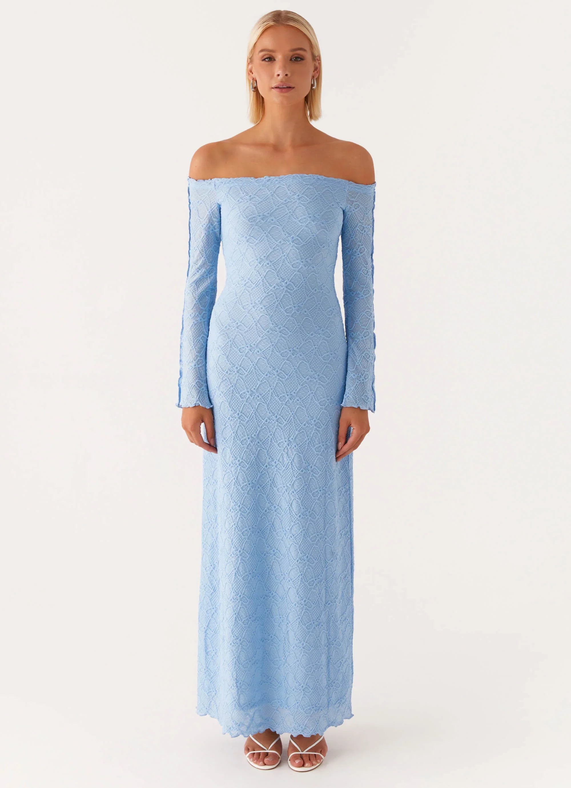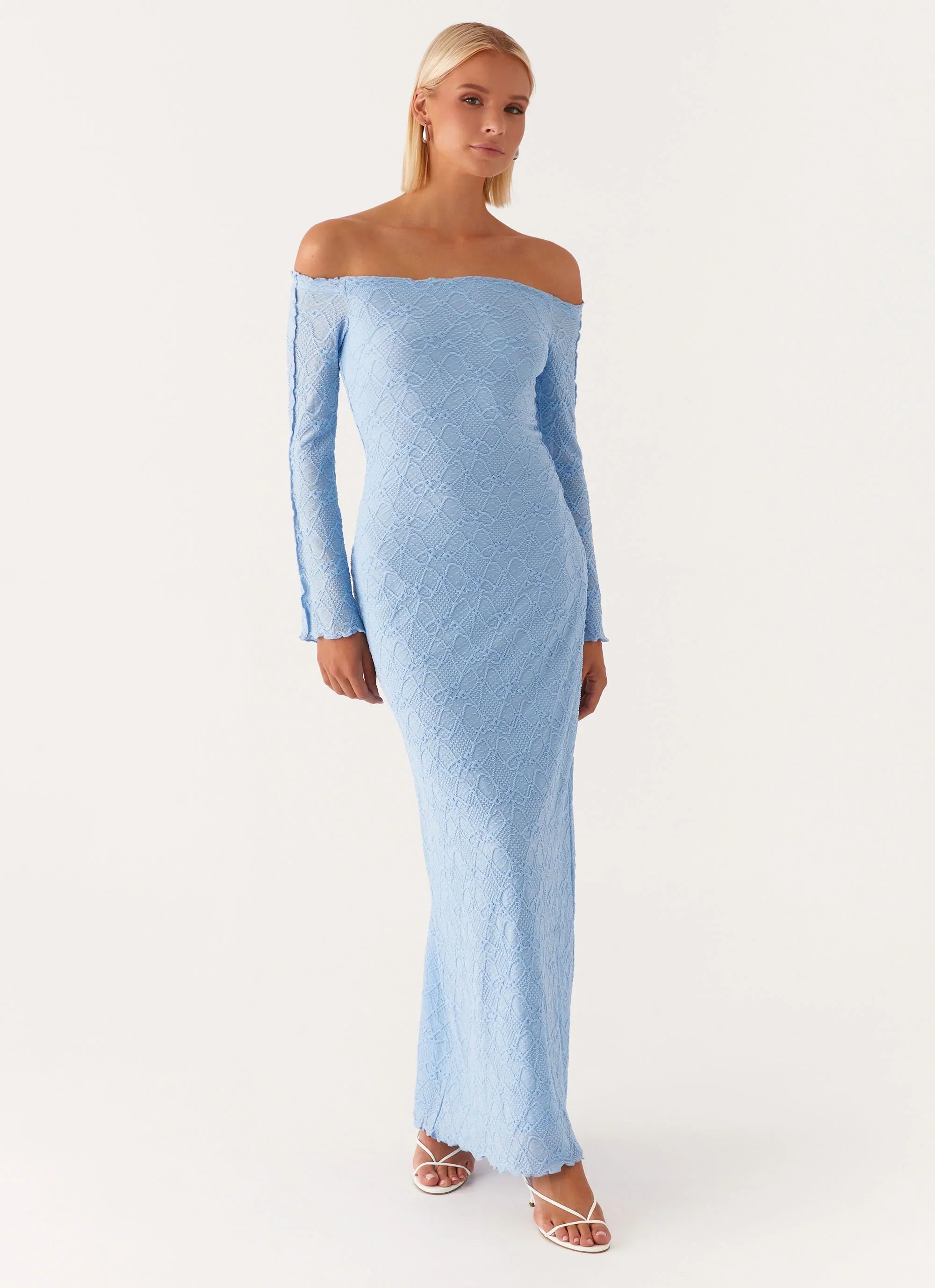 The Elouera Maxi Dress features an enchanting off-shoulder neckline and long sleeves, creating a captivating silhouette for your evening outings. Fully lined for comfort and elegance, this dress flows effortlessly with every step