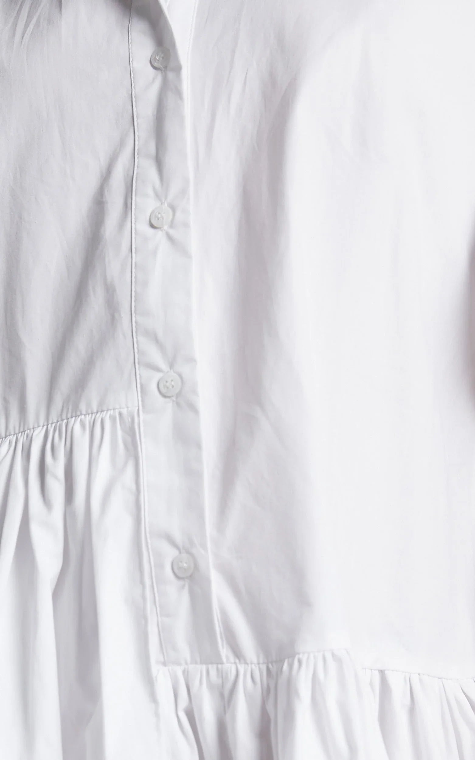 Introducing our Elowen Dress, a fresh remix of the summer mini. Made for work and the weekends, it has a breezy smock silhouette with a button-up front, short sleeves with a flared hem and an extra ruffle at the hem for an asymmetrical finish. Pair this cool and trendy piece with lace up heels and a mini shoulder bag for a dinner date look!