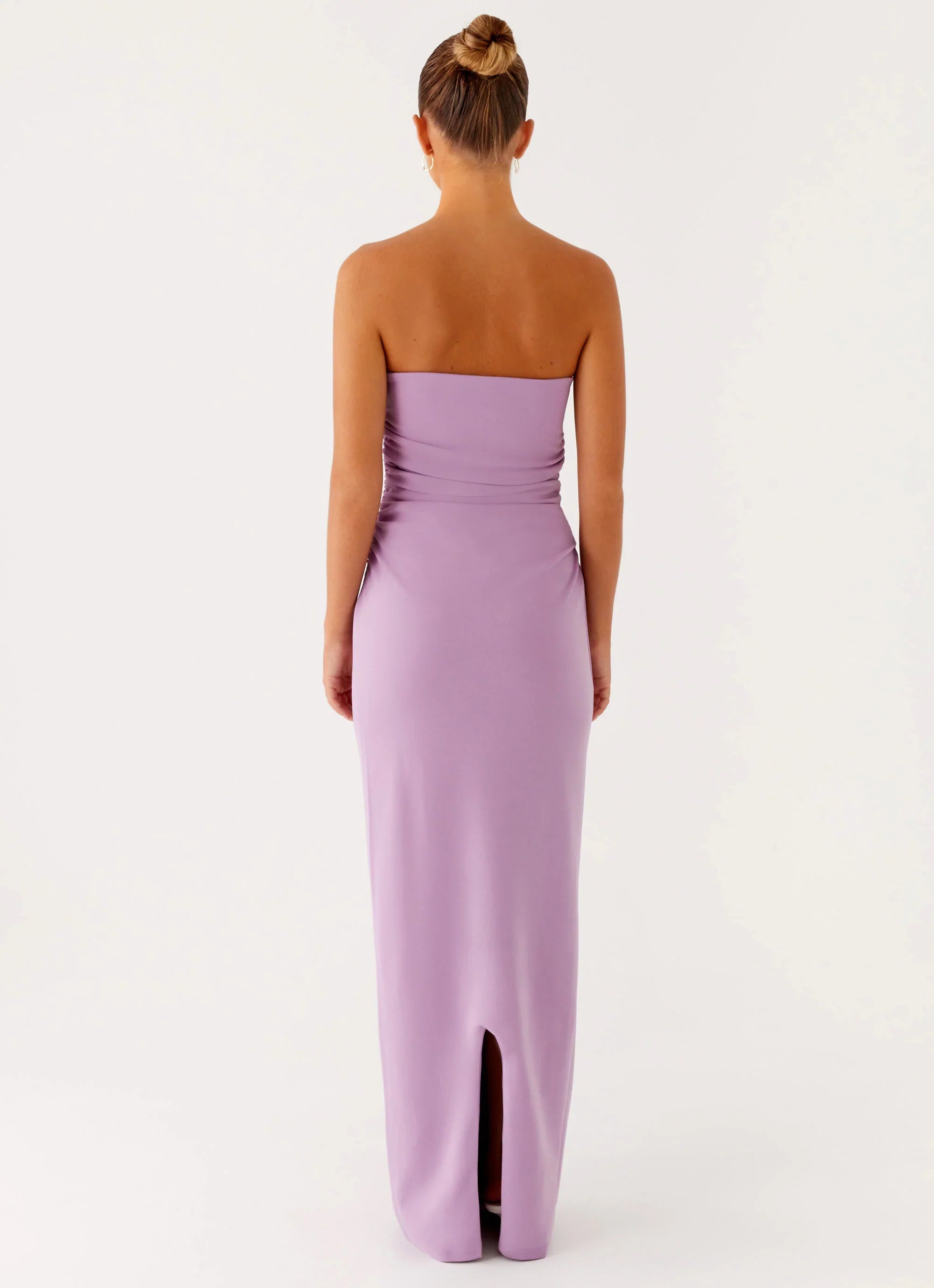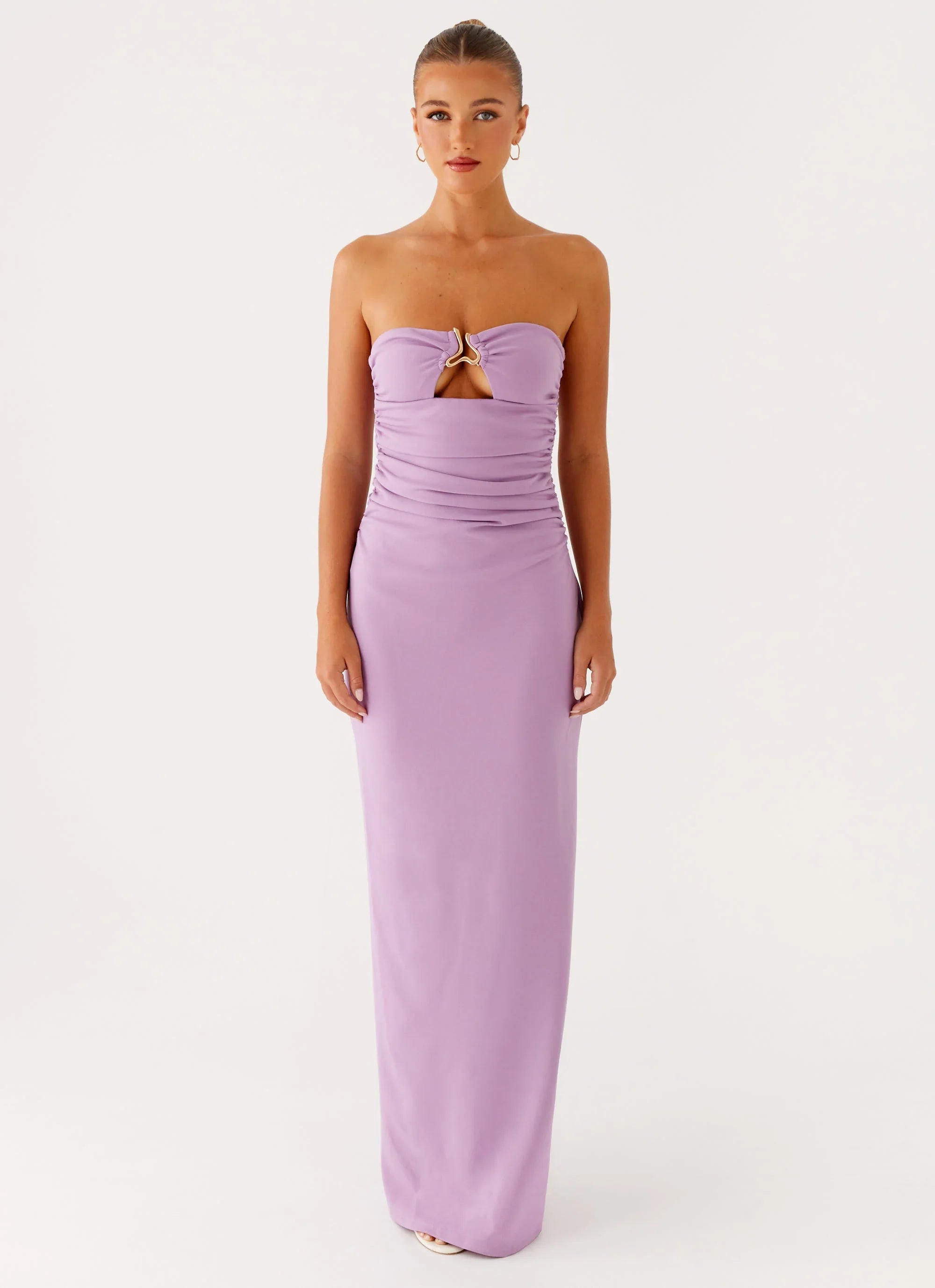 The Eryn Maxi Dress is the epitome of bold elegance. With its sleek strapless neckline and eye-catching front cutout, this dress offers a modern, daring silhouette that’s both sophisticated and edgy.