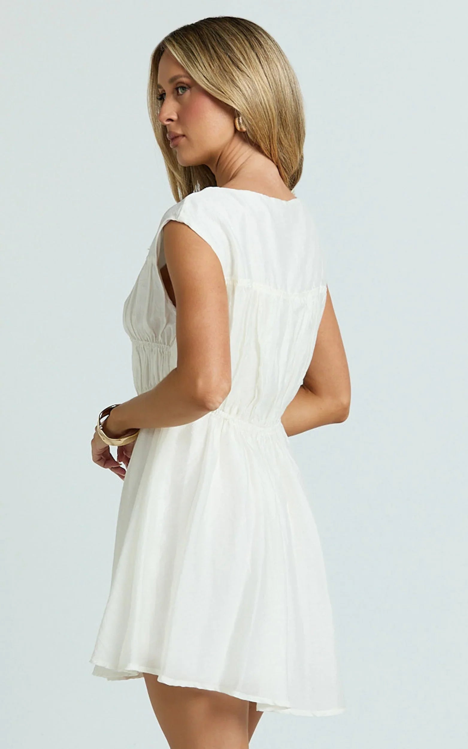 Meet Faith Mini Dress – Sleeveless Ruched Bodice Dress In White, a go-to for birthdays, date nights and every “what do I wear?” text. This little number lifts, shapes and celebrates your body, so you can move, mingle and own every photo. Wear it with simple hoops and a sleek clutch for a polished finish, or dial up the vibe with strappy heels and a soft glow.