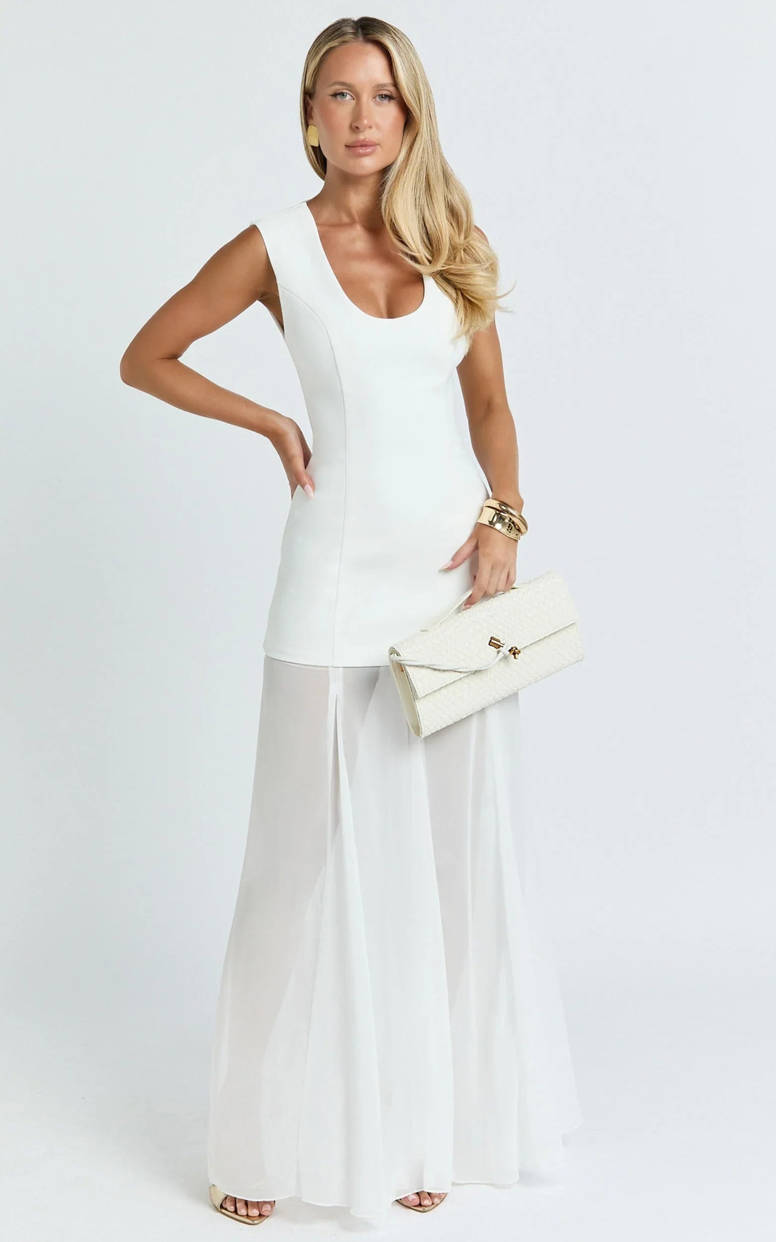 A contrast U neckline frames the decolletage while a godet A-line skirt flows with every step, think Balletcore ease with elegant movement. Perfect for parties, long lunches and “all eyes on you” moments, this ivory number elevates your Dresses lineup with clean lines and a flattering, cinched-through-the-waist silhouette.