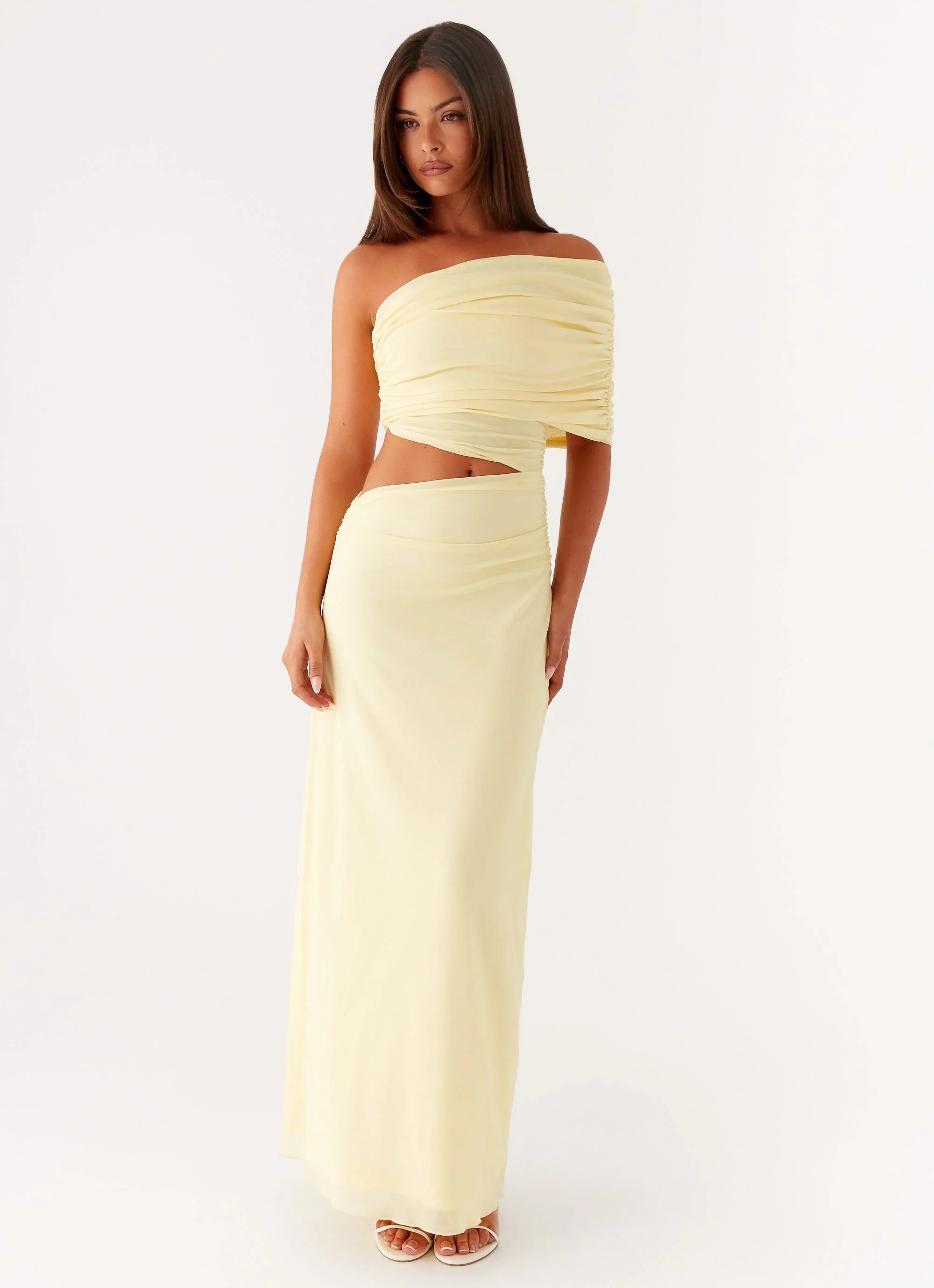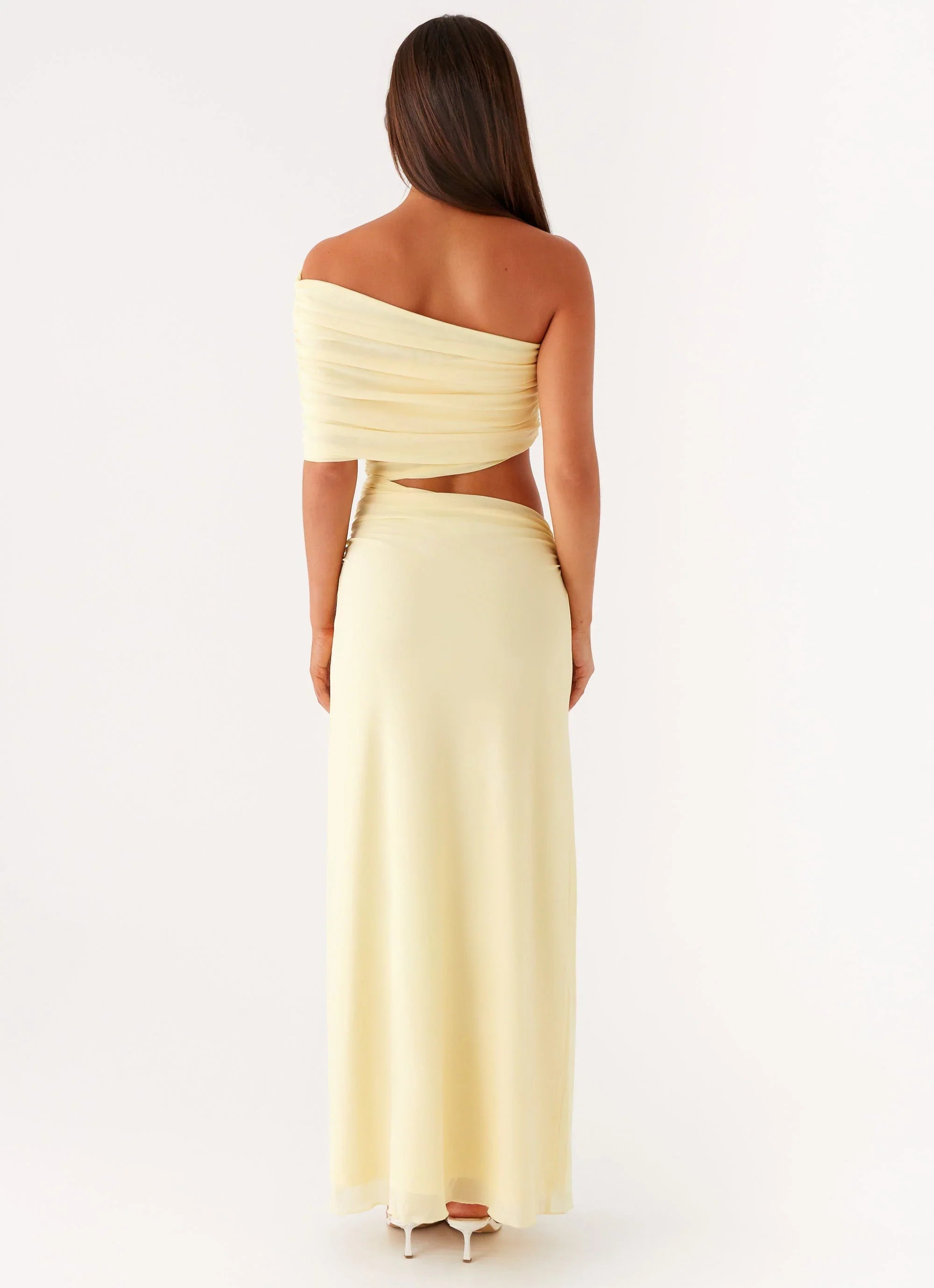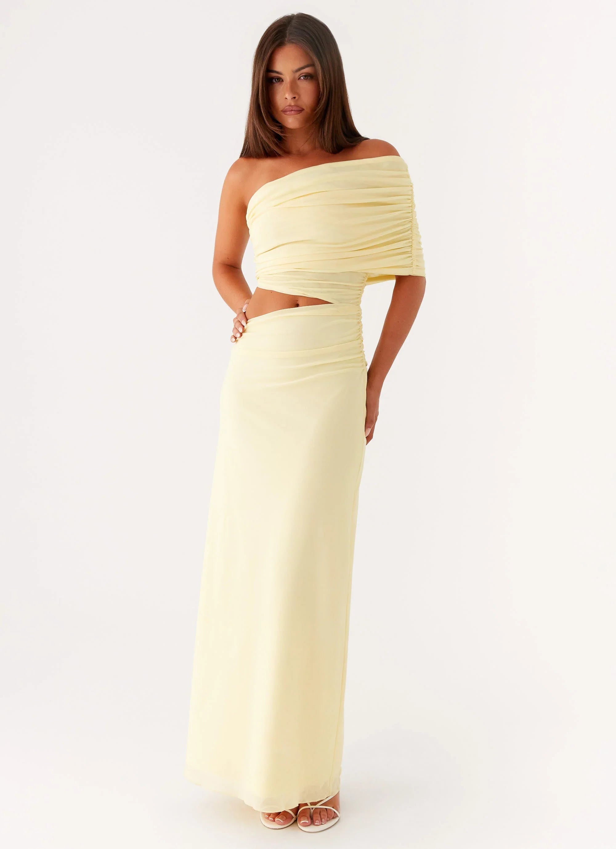 The Gillian Maxi Dress is sleek and striking, designed to turn heads. Featuring a one-shoulder neckline and a daring lower stomach hip cutout, it blends bold details with a sophisticated silhouette.