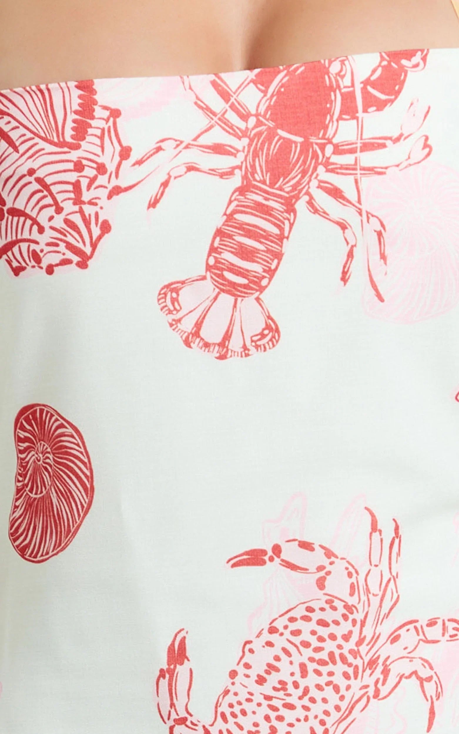 Meet the Gillian Mini Dress – Halter Pencil Skirt Dress In Lobster Print, your shortcut to standout style with a twist of sheer-it’s-not subtle charm. Lean into the trend wave with sculptural volumes in your accessories or metallics for that after-dark glow. A killer choice when you want cute with confidence and a look that always lands.
