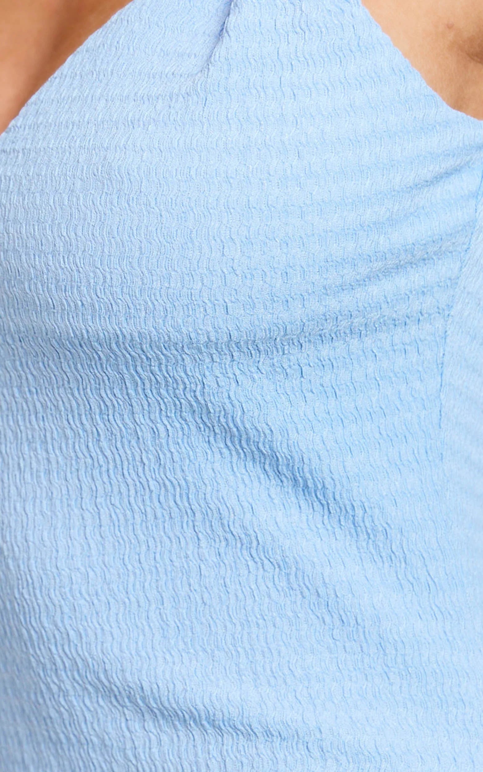 Make it a statement with the Gisele Maxi Dress - Twist Straps V Neck Fitted Column Dress In Blue and lean into trending textures, think a touch of sumptuous suede or a hint of patent-leather in your accessories to contrast the clean lines. From date night to evening events, this blue beauty serves legs-for-days energy and timeless glamour, all in one.