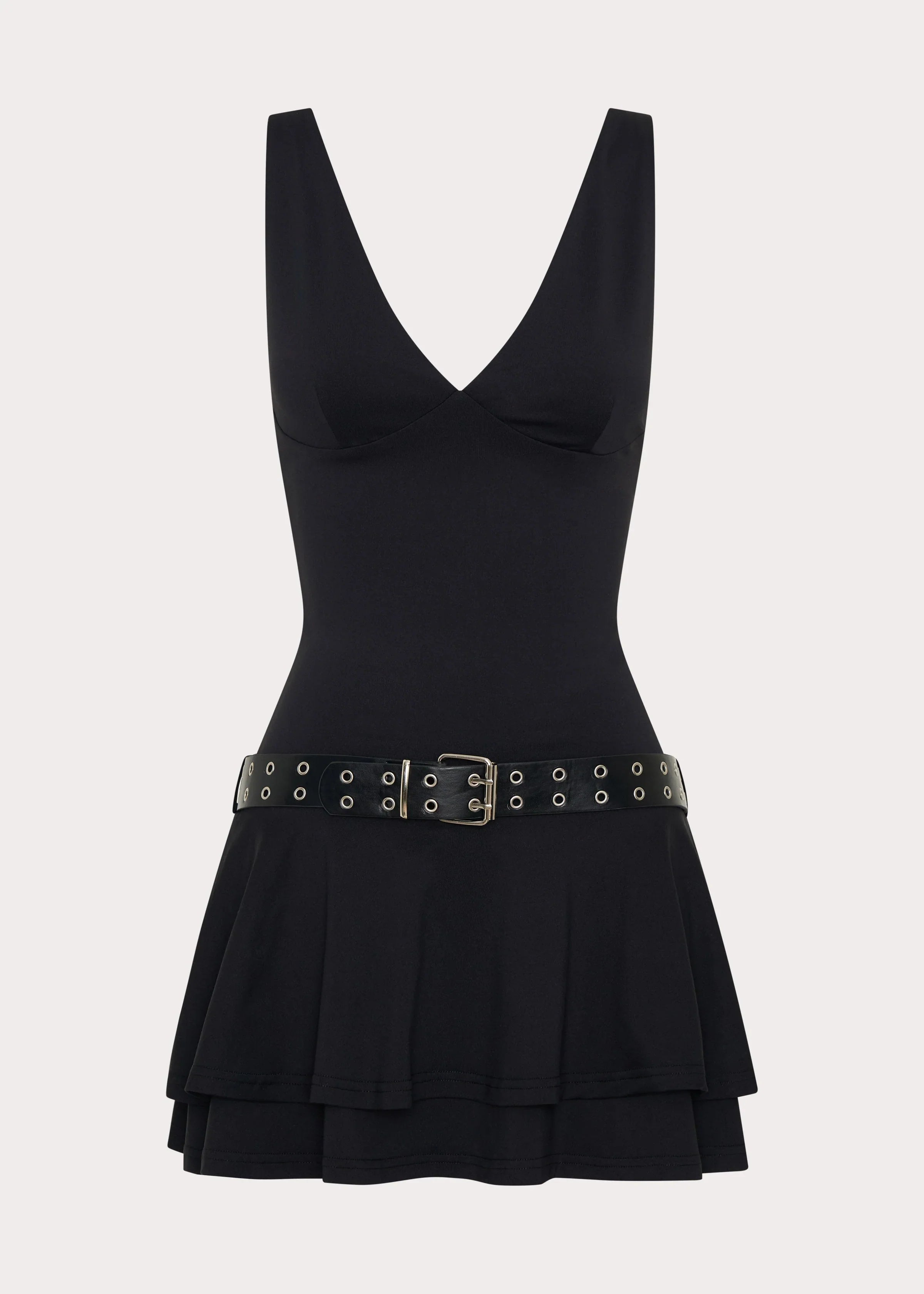 Chic with a hint of edge, the Gold Coast Mini Dress in Black is your go-to for nights that never slow down. Featuring a low front neckline, A-line skirt, and a belted waist with loops, it’s made to flatter, define, and turn heads.
