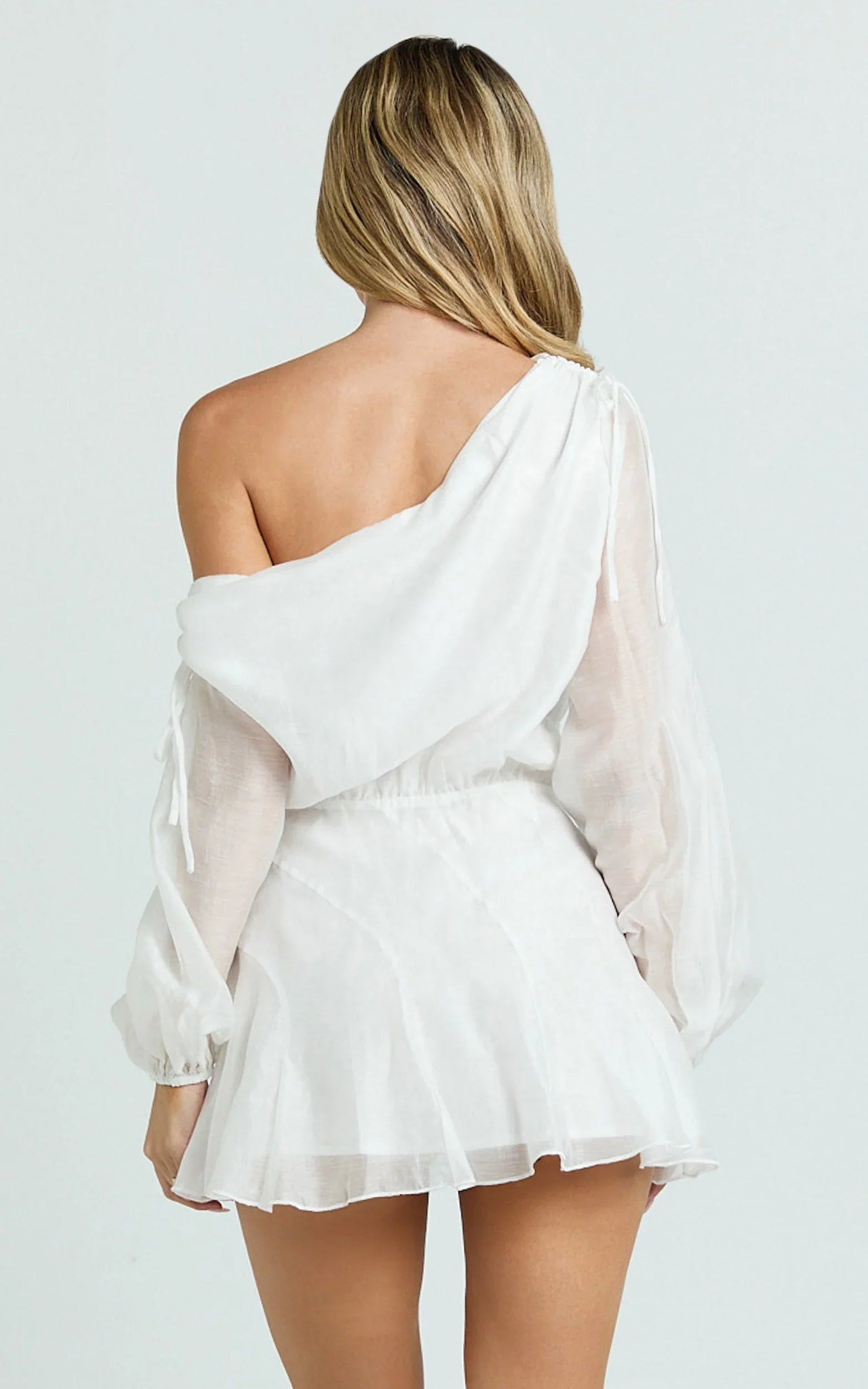 Hayes Mini Dress elevates your going-out rotation with subtle drama that nods to current runway moods, sheer-adjacent ease up top and a swishy finish that loves the camera. Style it simply with strappy heels and a mini bag to keep all eyes on the shape, or lean into the metallics moment with high-shine accents for that after-dark glow. Effortless, flirty, and endlessly versatile, this white mini is your new RSVP-ready staple.