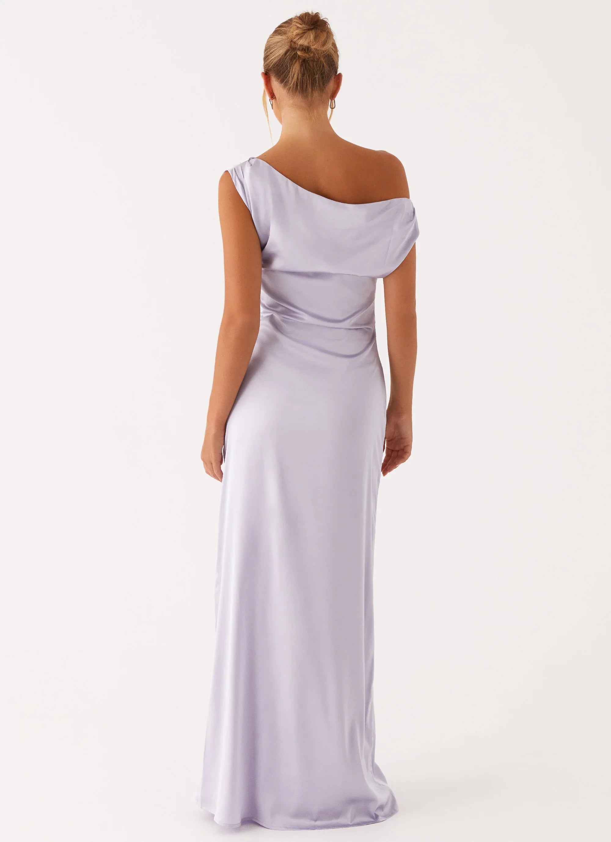The Heart of Glass Satin Maxi Dress is a vision of elegance and romance. The off-shoulder neckline exudes effortless allure, while ruched shoulders add a touch of texture and drama. The flowing maxi length moves gracefully with every step, creating a stunning silhouette.