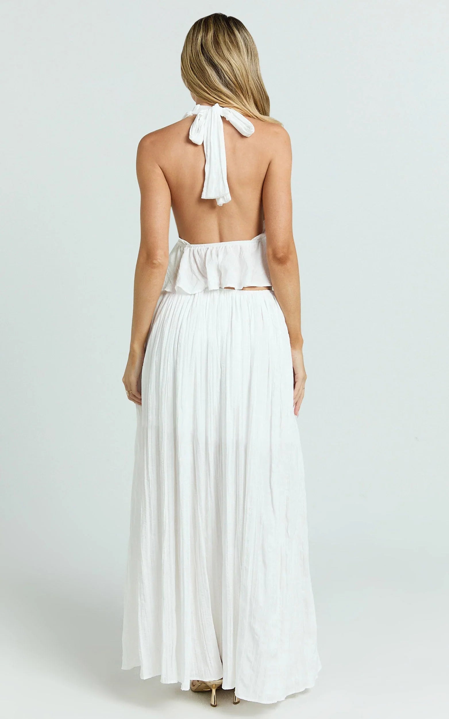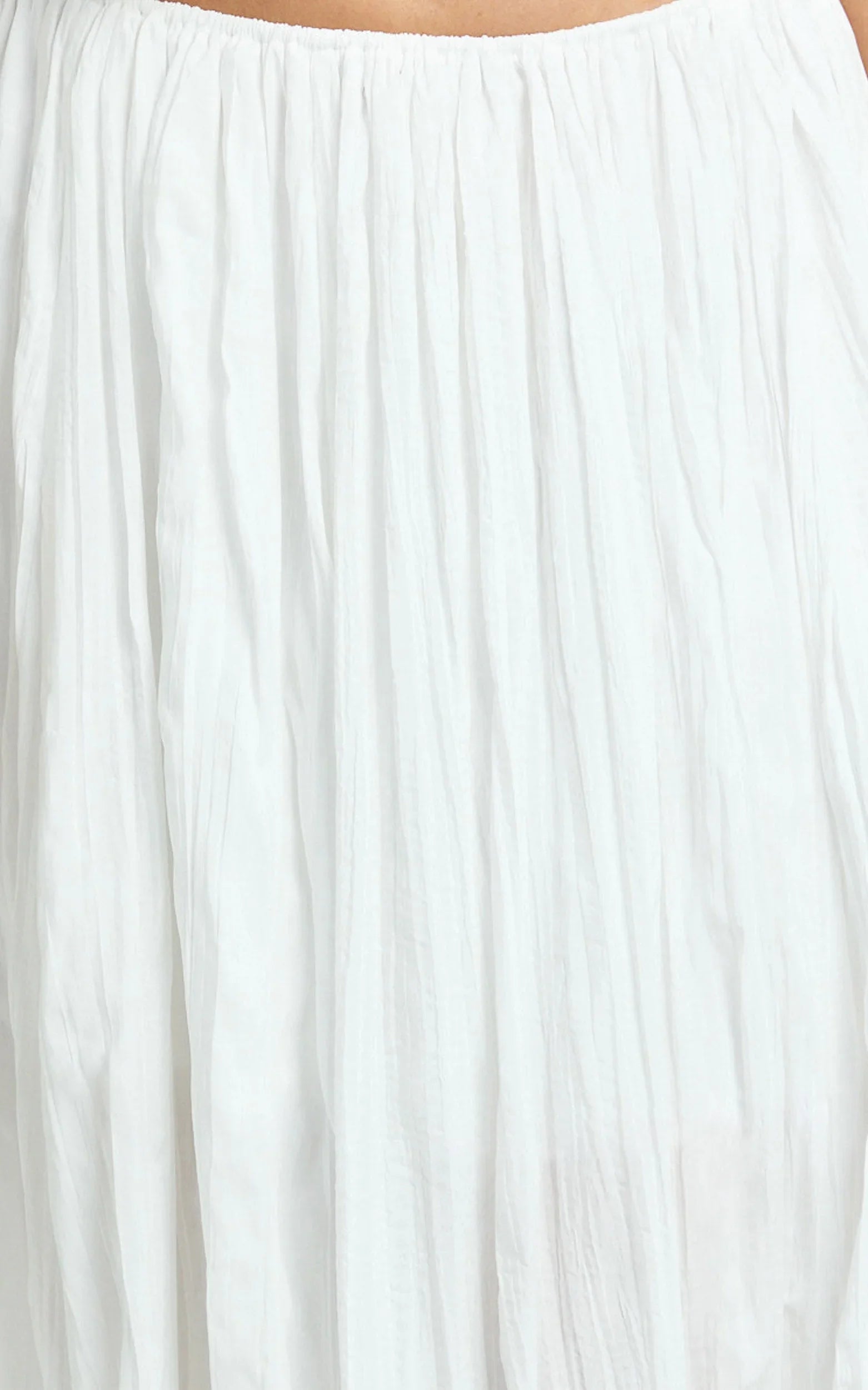 With an elastic waist for comfort and a side split for that leg-lengthening moment, it delivers an elongated silhouette that moves effortlessly from day to drinks. Skirts like this go from beach walks to brunch without trying too hard, and the crisp white hue keeps it fresh and versatile.
