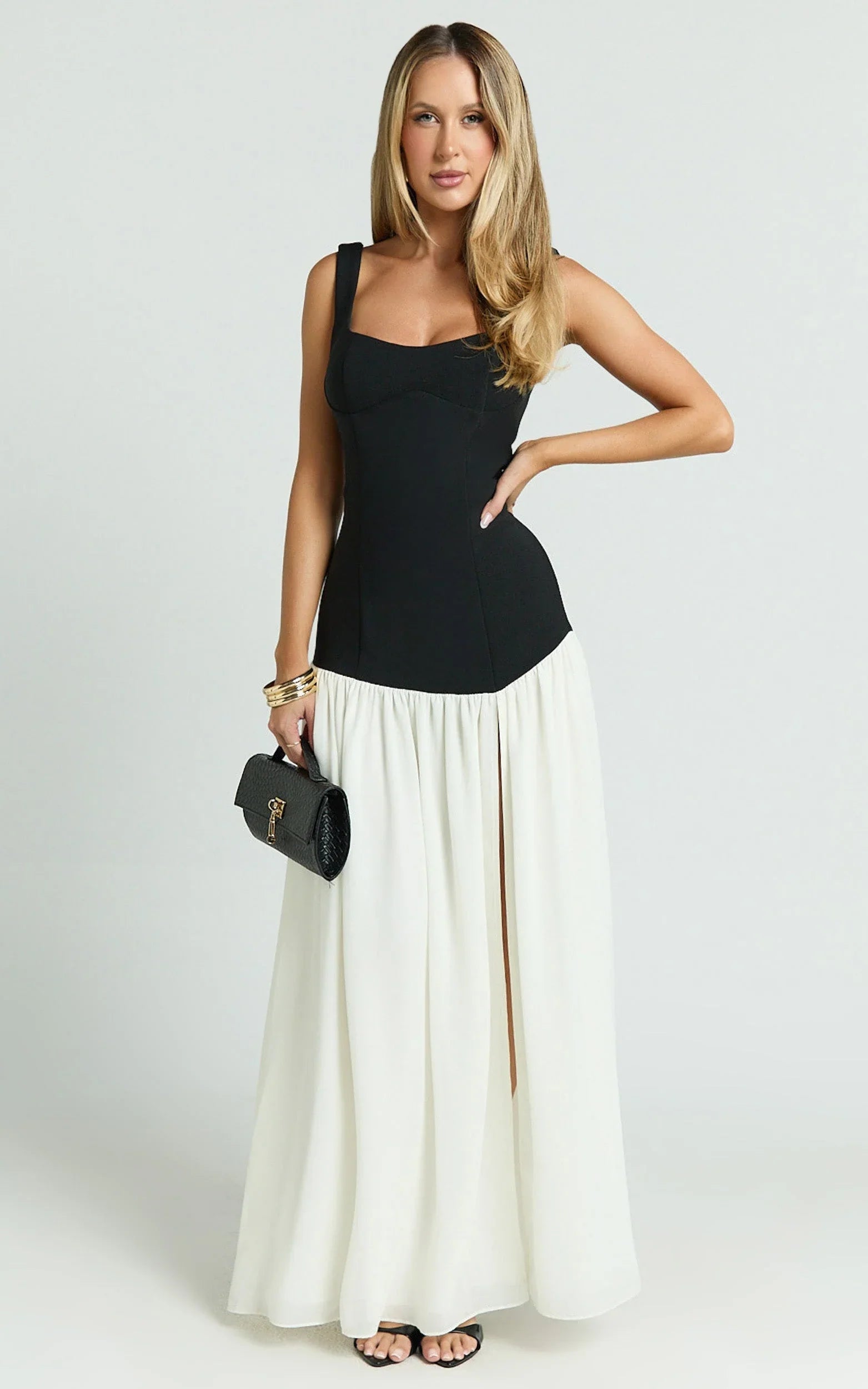 Make a statement in the Hilary Maxi Dress, where timeless elegance meets contemporary chic. This contrast sweetheart bodice fit and flare dress is a masterpiece in black, designed to celebrate you in every moment. Crafted from luxurious georgette over a comfortable polyester lining, it promises not just to dazzle but also to deliver unmatched comfort throughout your eventful evenings.