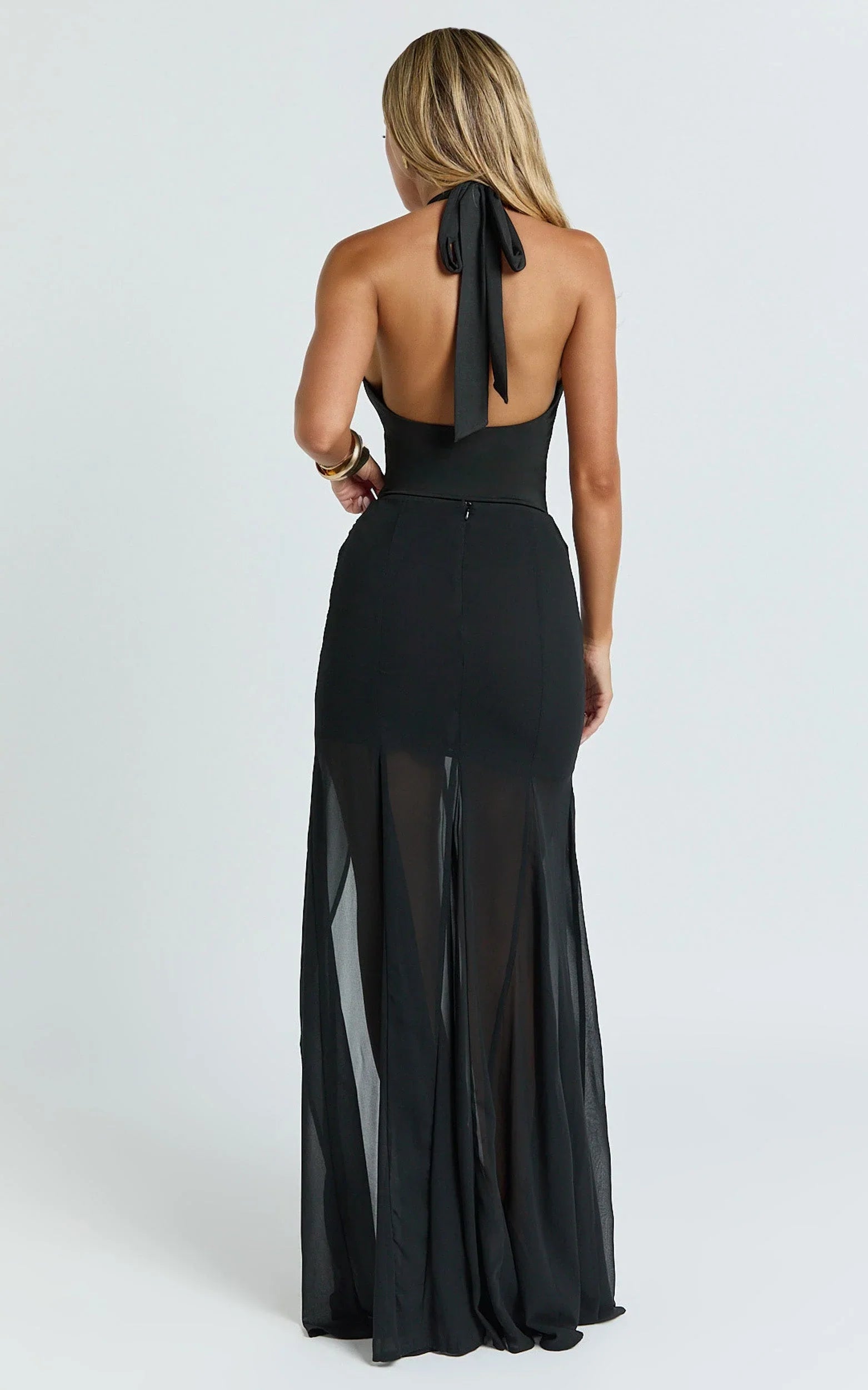 This georgette godet panel silhouette swishes with every step, cinches the waist, and skims the hips for a sleek, leg-lengthening effect. Perfect for nights out and dressy moments, it channels Balletcore grace in a bold, all-black finish that works with everything in your wardrobe.
