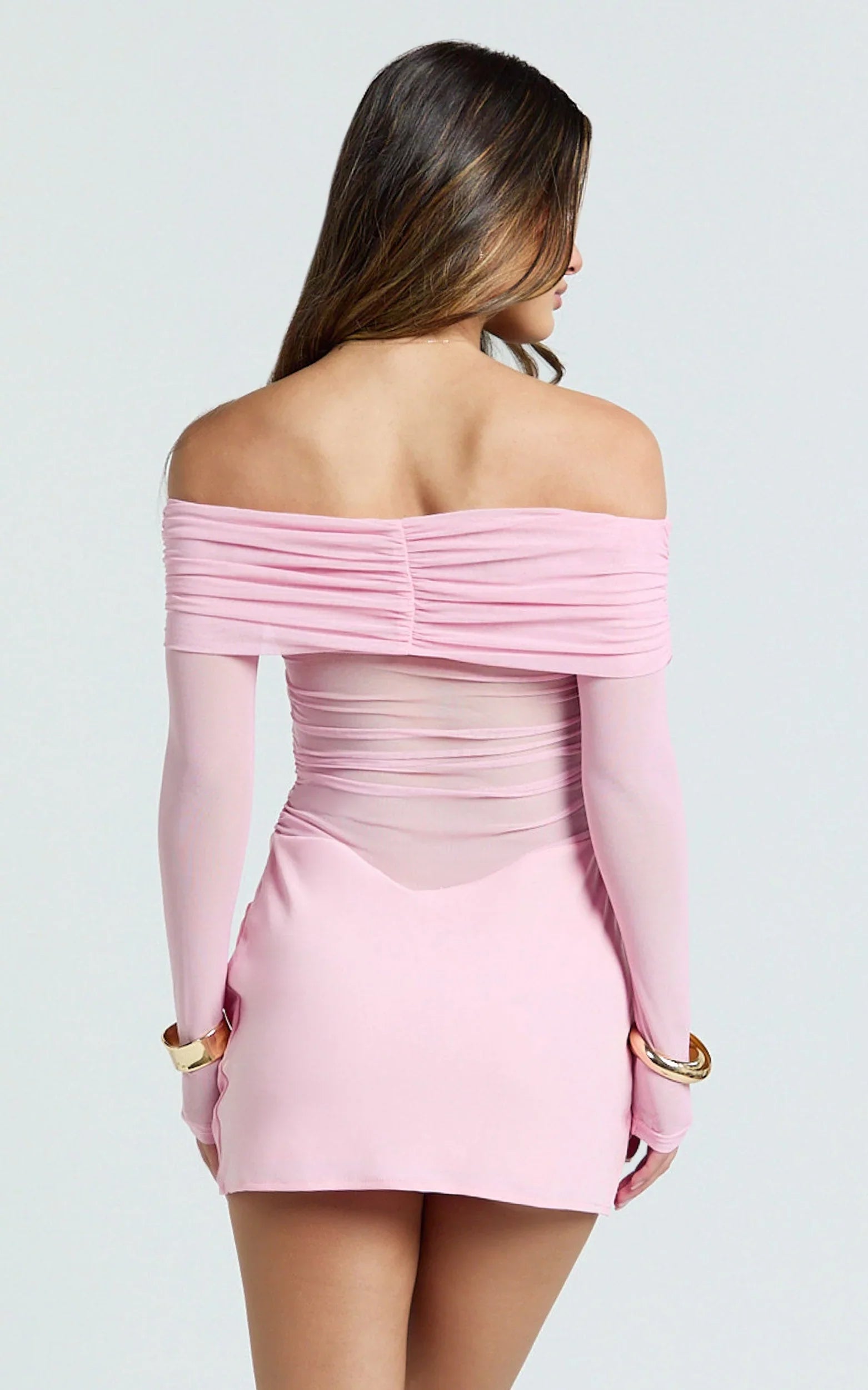 The dreamy pink hue and draped bias cut are oh-so-flattering, while the long sleeves and off-shoulder neckline channel major coquette style dresses energy, one of this season’s hottest trends. Designed to accentuate every curve with a playful yet polished touch, this dress delivers main character energy whether you’re heading out for drinks or hitting up virtual fashion shows with friends.
