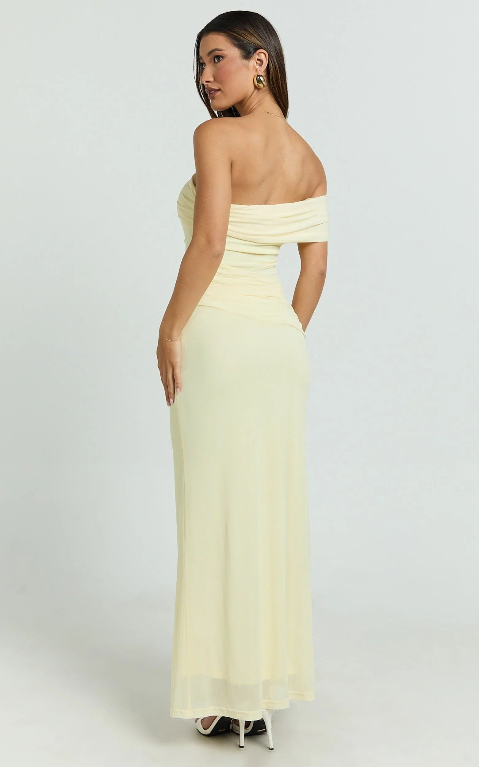 In a zesty Yellow hue that channels Butter Yellow energy, it skims and lengthens with sheer statements that keep things light and flirty. The asymmetric neckline and side-slit vibe deliver that “Dresses, but make it drama” feel, perfect for garden parties, long lunches, and dance-all-night plans.